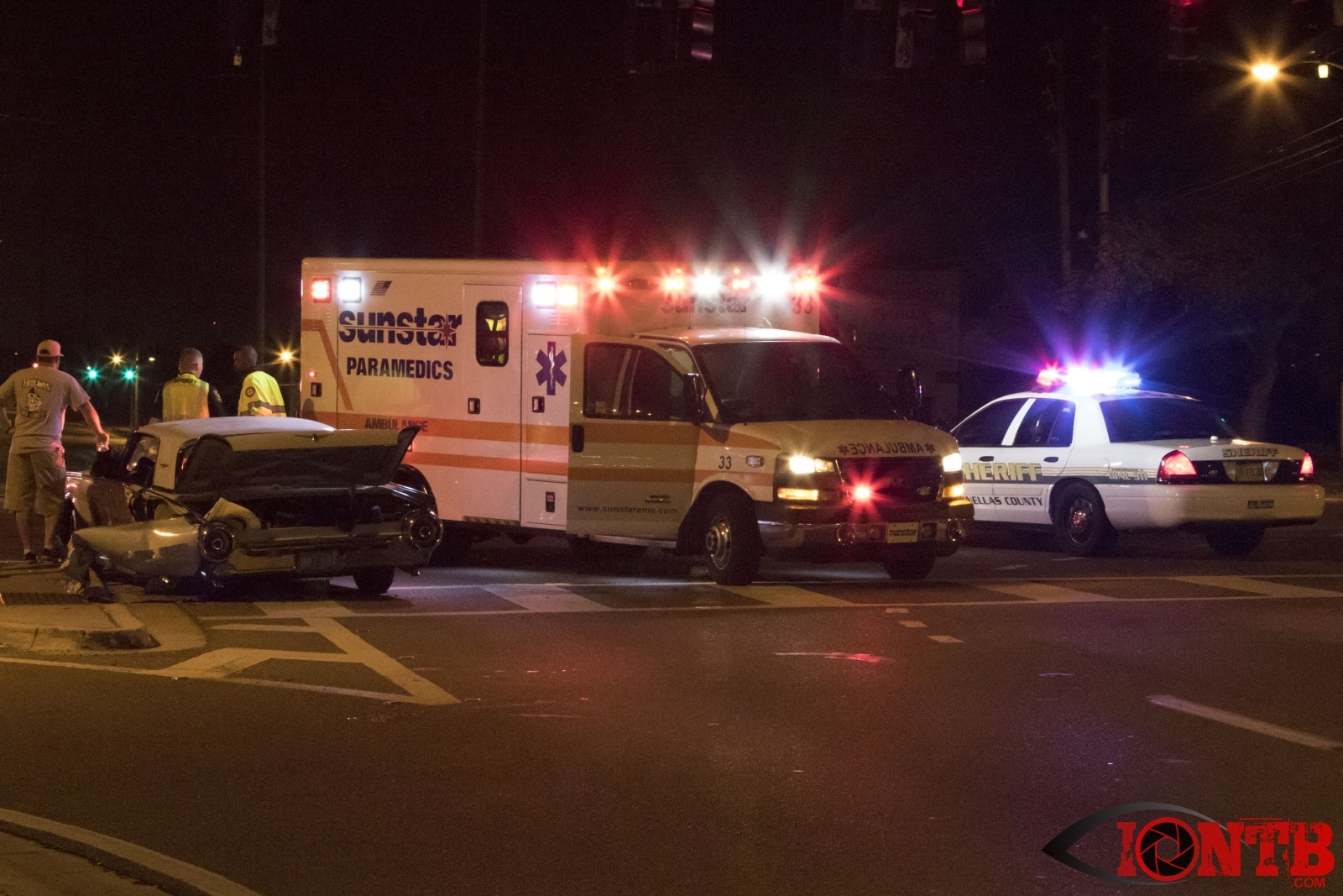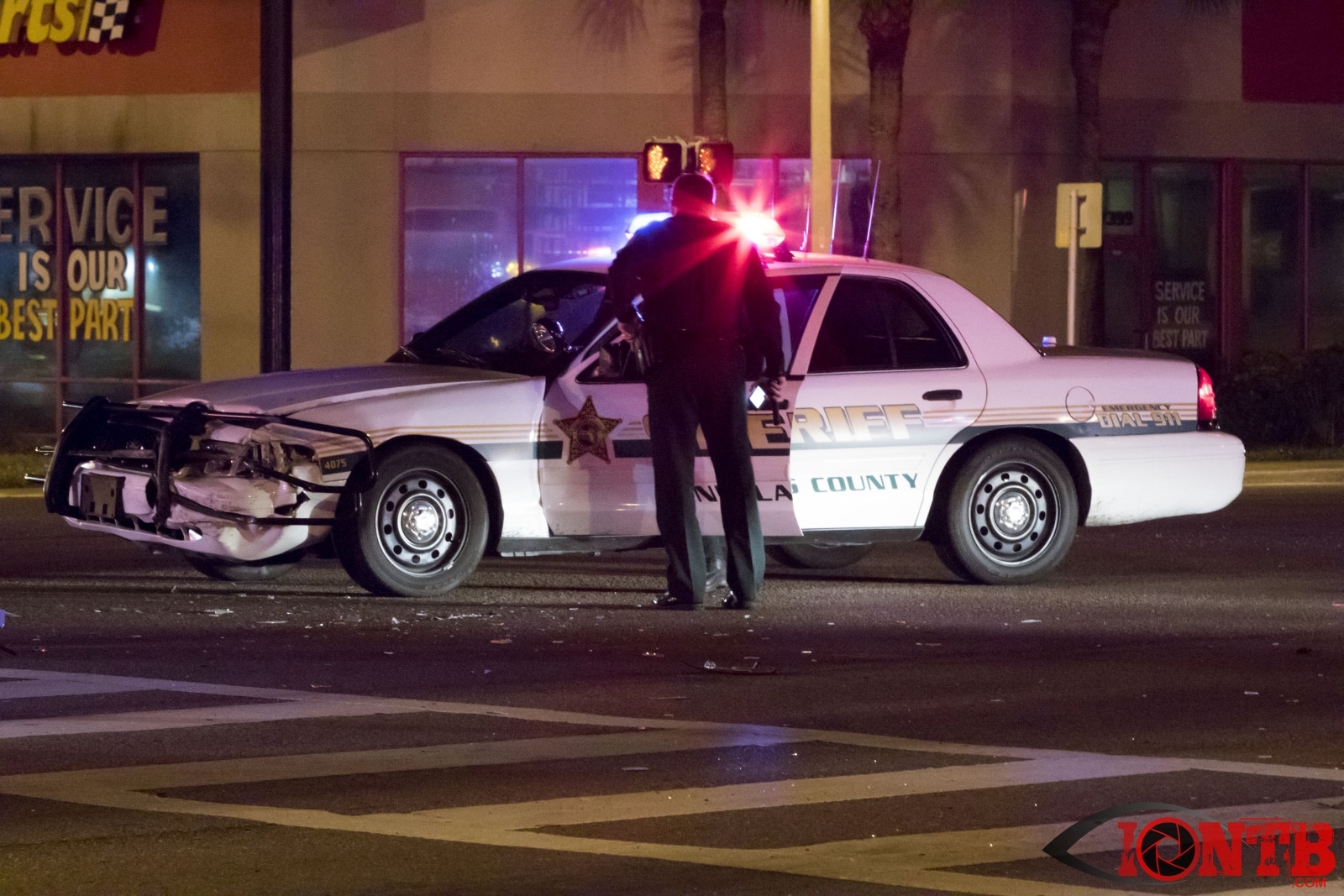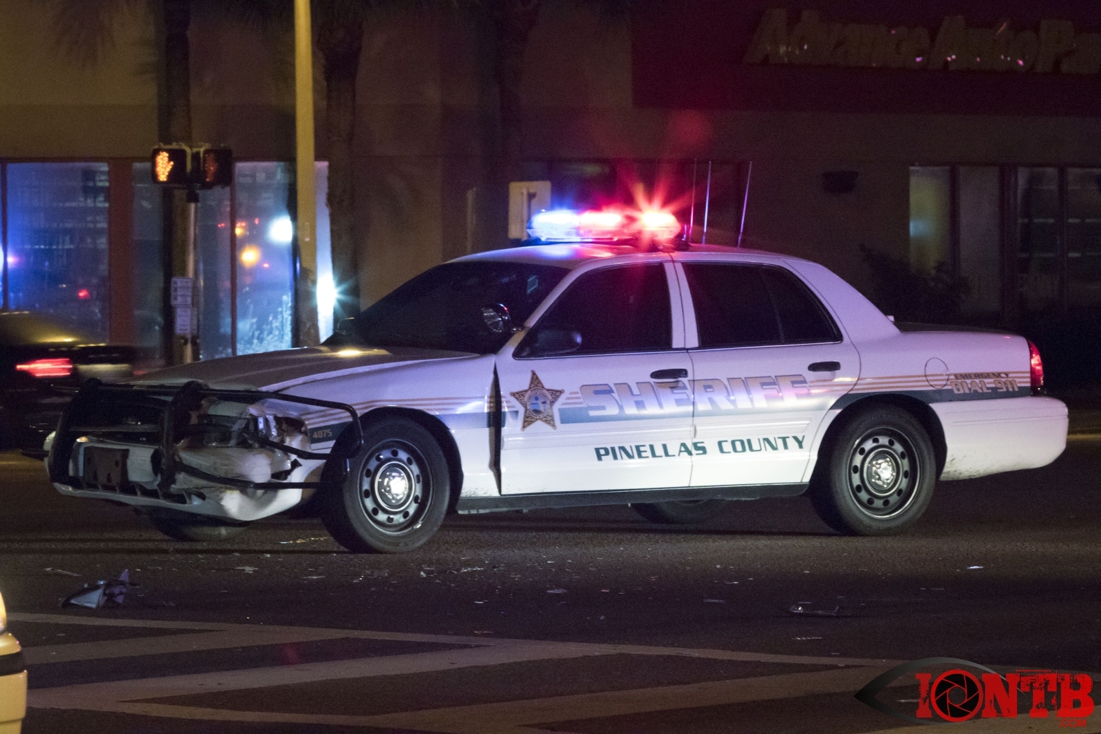At approximately 12:08 AM on Saturday, April 11, 2015, a Pinellas County Sheriff’s Office (PCSO) Deputy reported via radio that he was involved in a traffic crash with another vehicle. The crash occurred in the middle of the intersection of Park Boulevard and Seminole Boulevard. Additional units from PCSO along with Seminole Fire Rescue Department and Sunstar Paramedics were sent to the scene.
