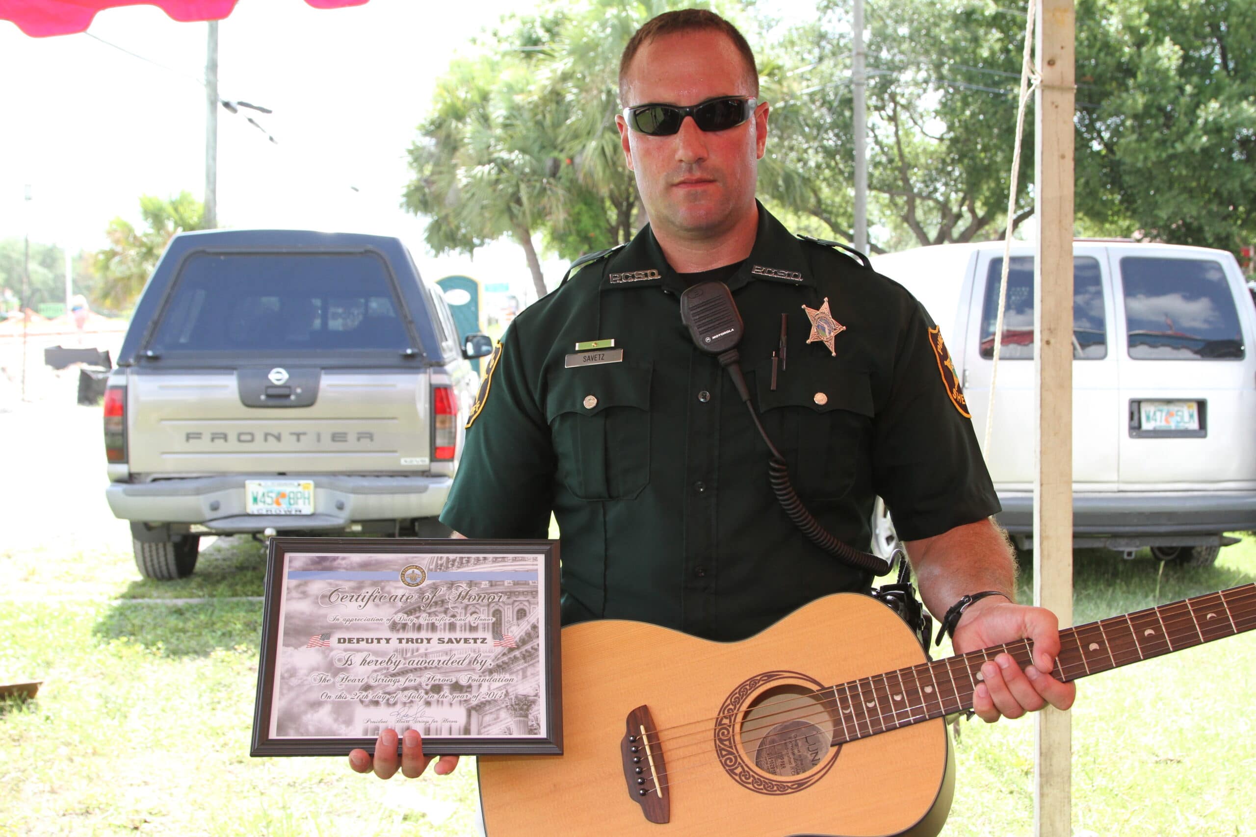 For his actions, he was honored by the Heart Strings For Heroes Foundation