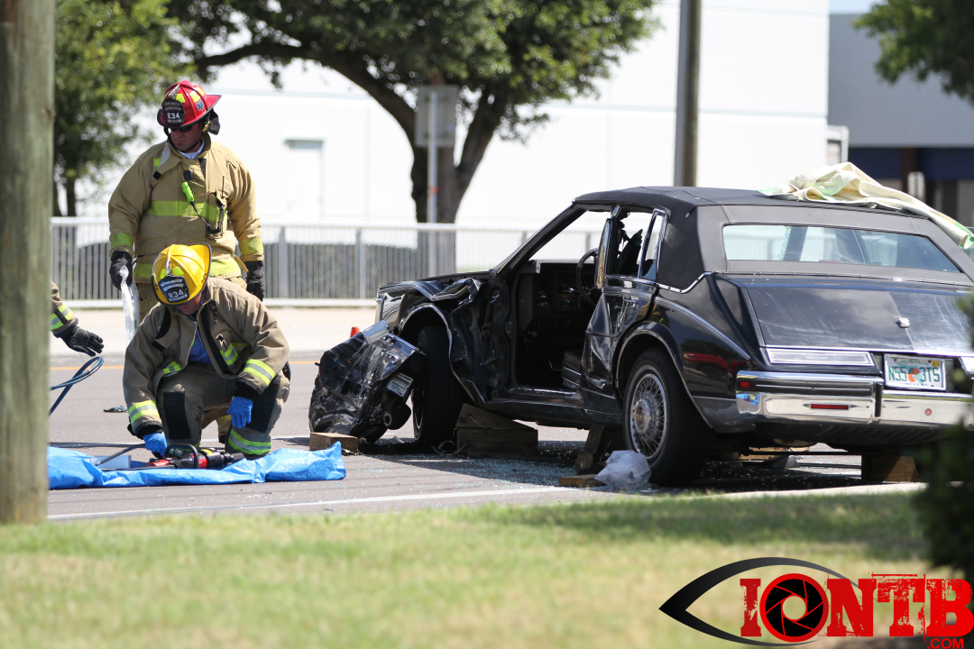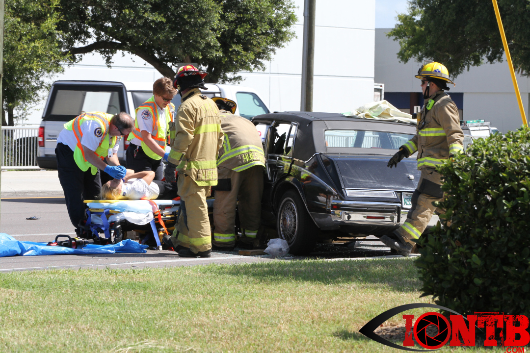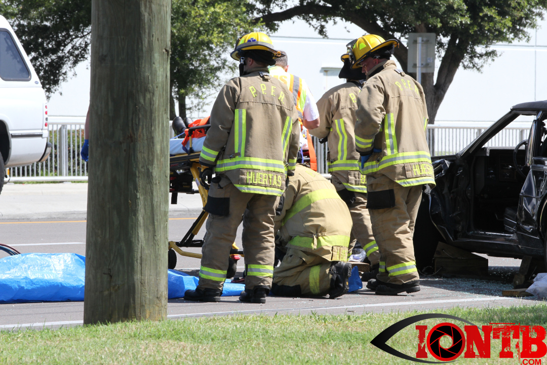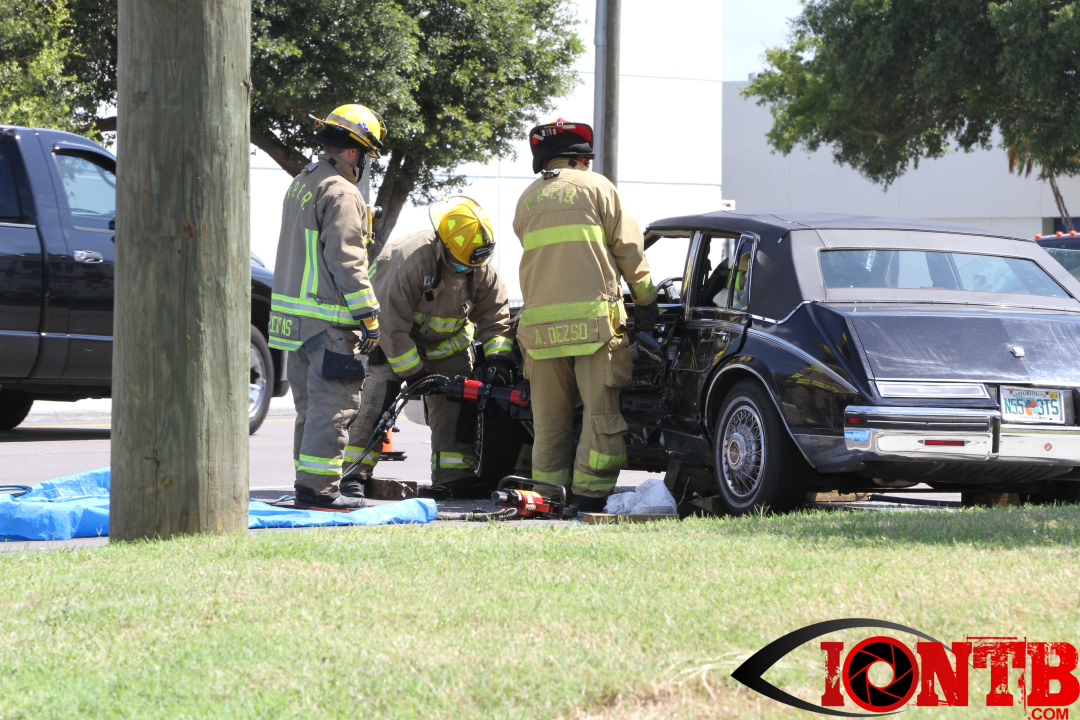 Pinellas Park Fire Department extricating women from vehicle crash on Bryan Dairy Road