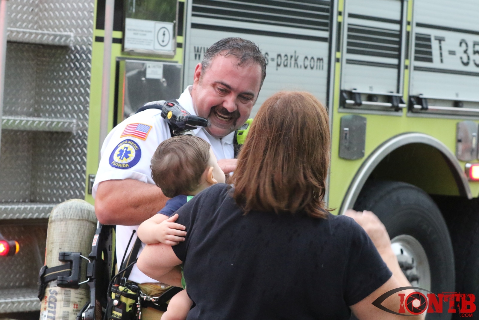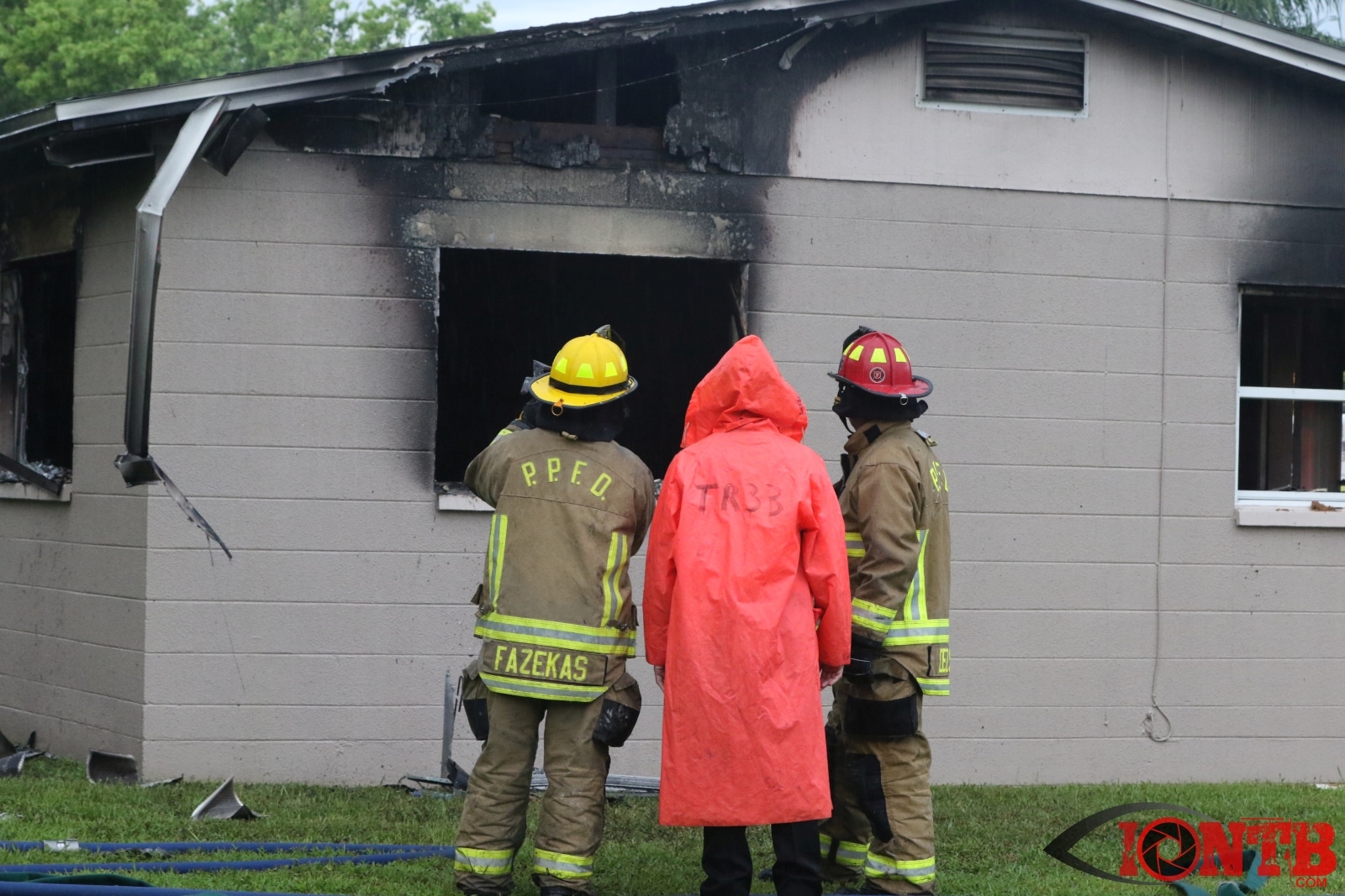Arriving fire units kept a safe distance until the scene was safe for firefighting operations due to past interactions between the occupant of the home and Pinellas Park Police. Unusual behavior was also being reported on behalf of the occupant by a resident who contacted 911. Once the occupant, identified as 57 year-old Gregory Gallagher, was in custody, crews observed smoke and flames from the back corner of the home.
