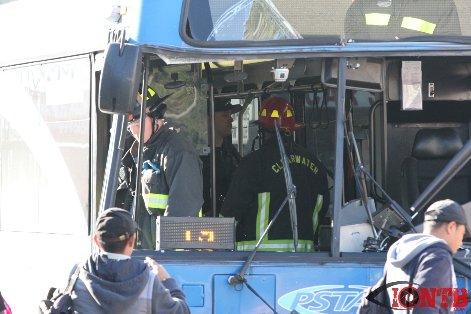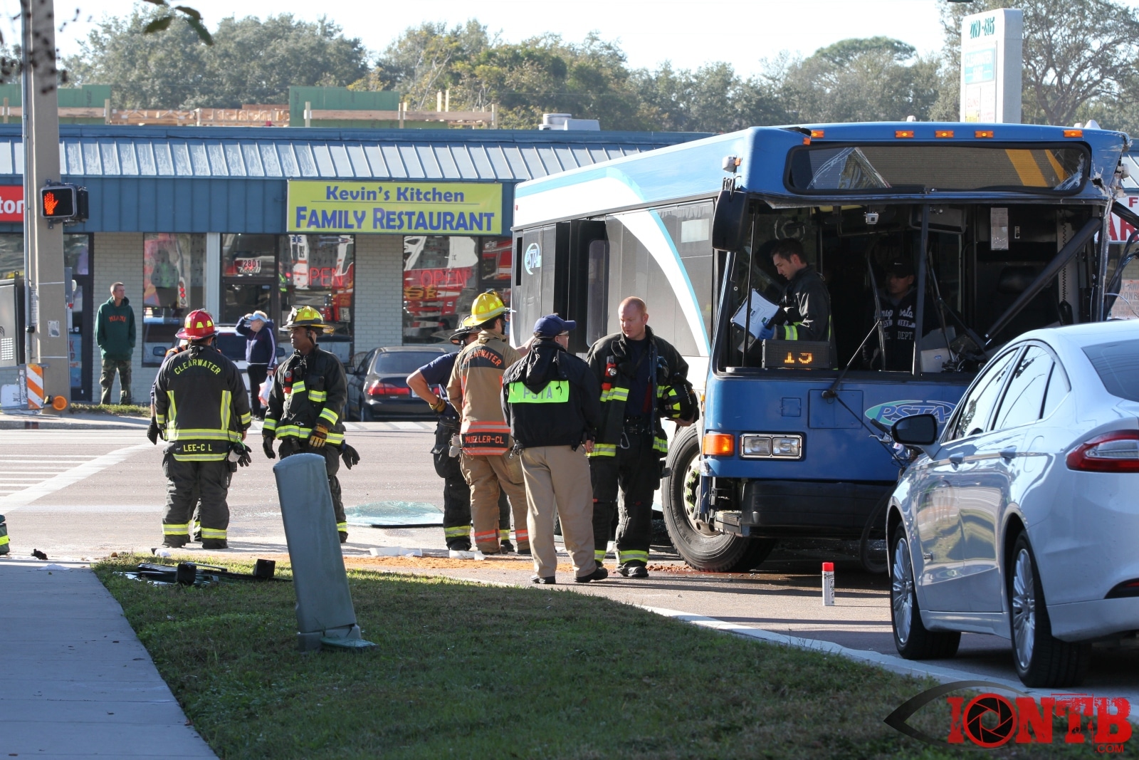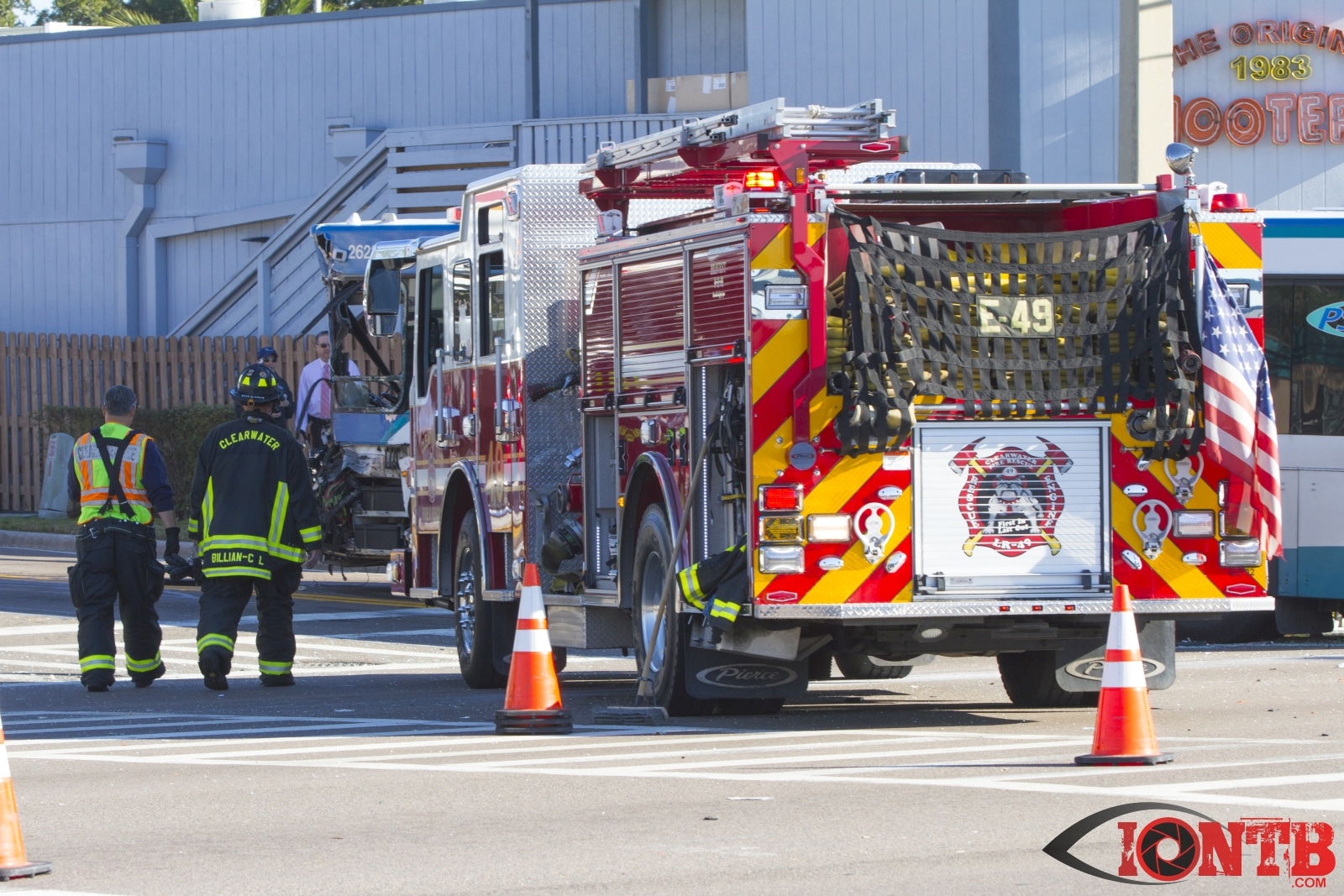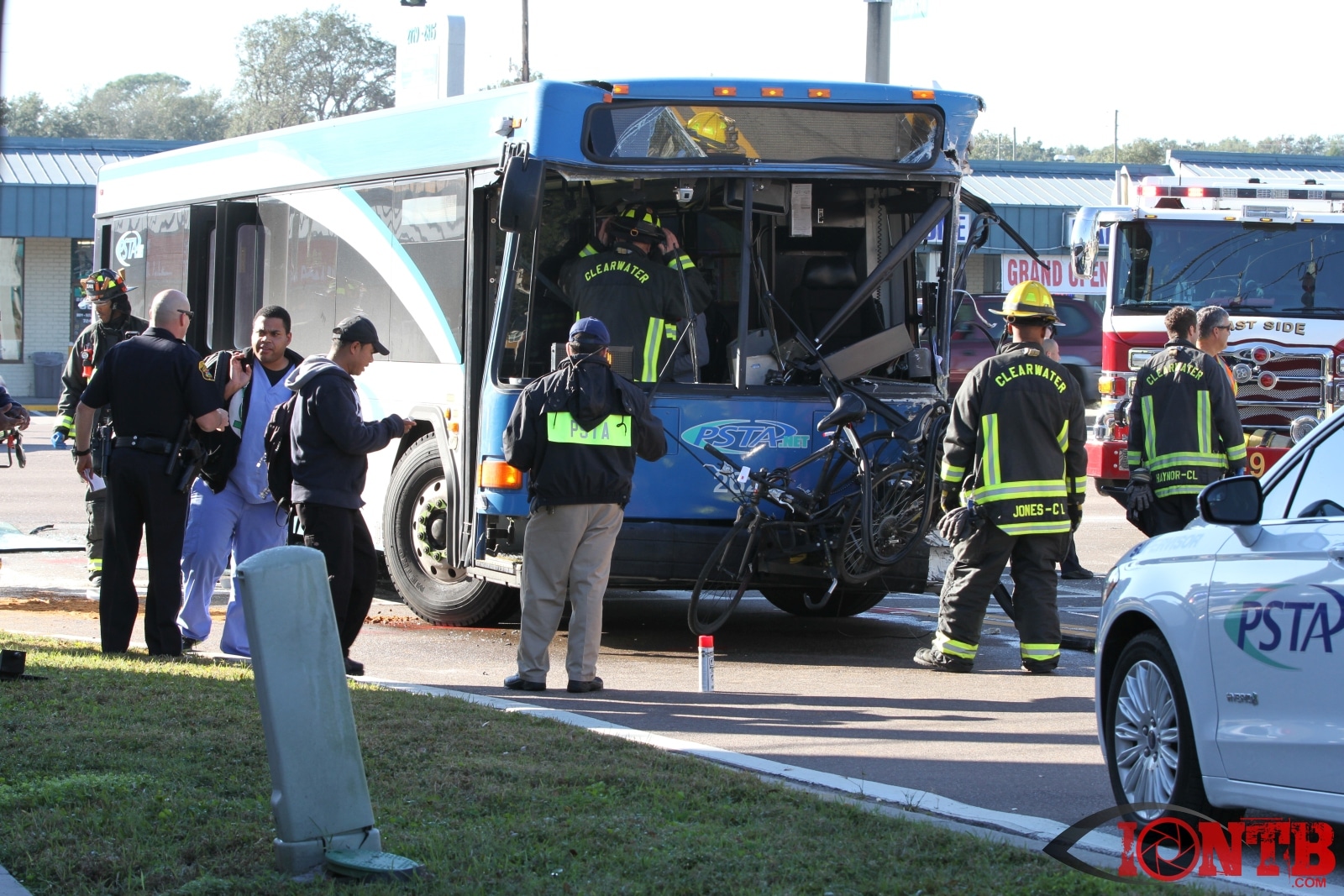 On Saturday, December 13, 2014 at approximately 8:55 AM, crews from Clearwater Fire & Rescue, Sunstar Paramedics and Clearwater Police Department responded to Gulf to Bay Blvd and Hampton Road for reports of a vehicle crash involving a dump truck and a PSTA bus.