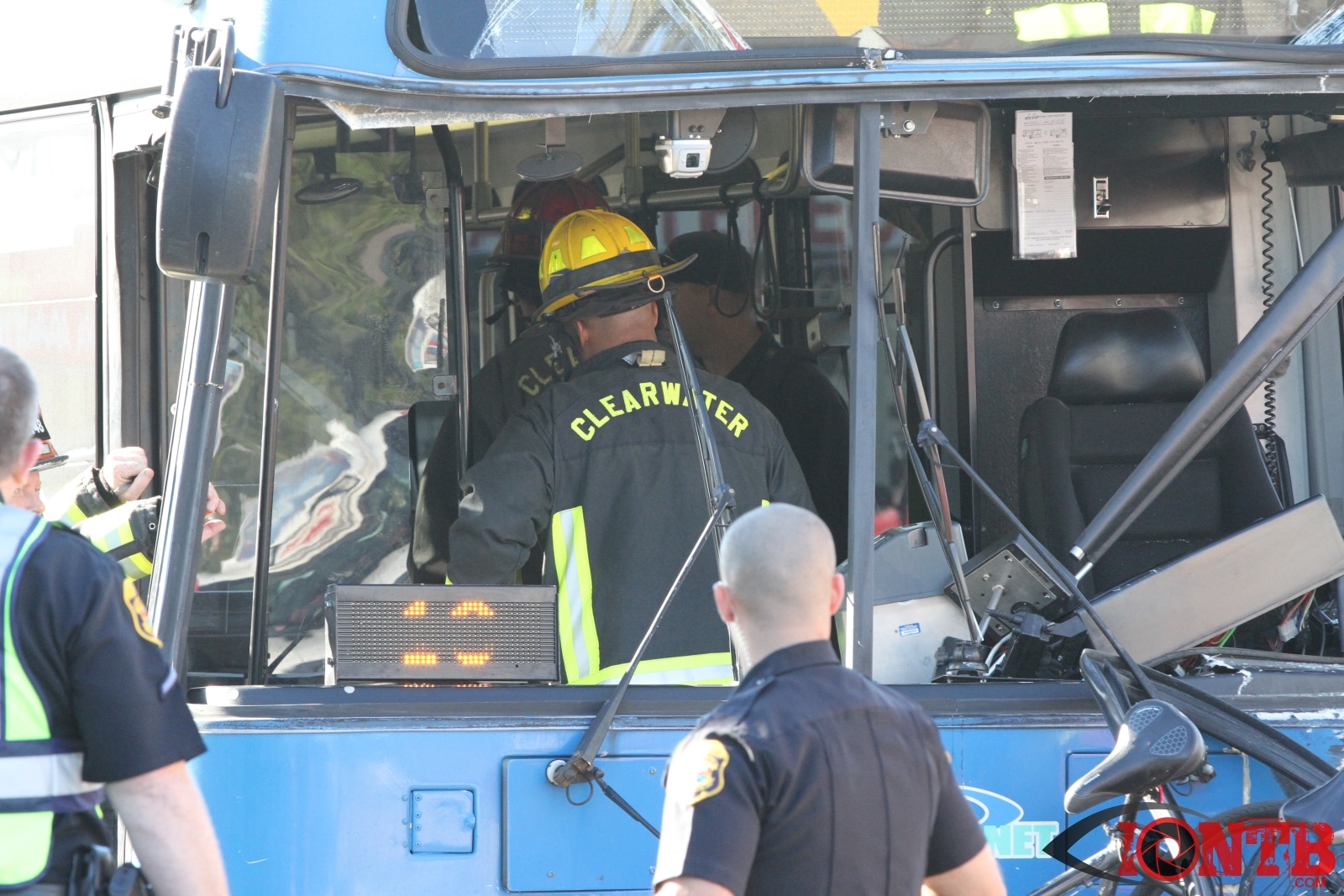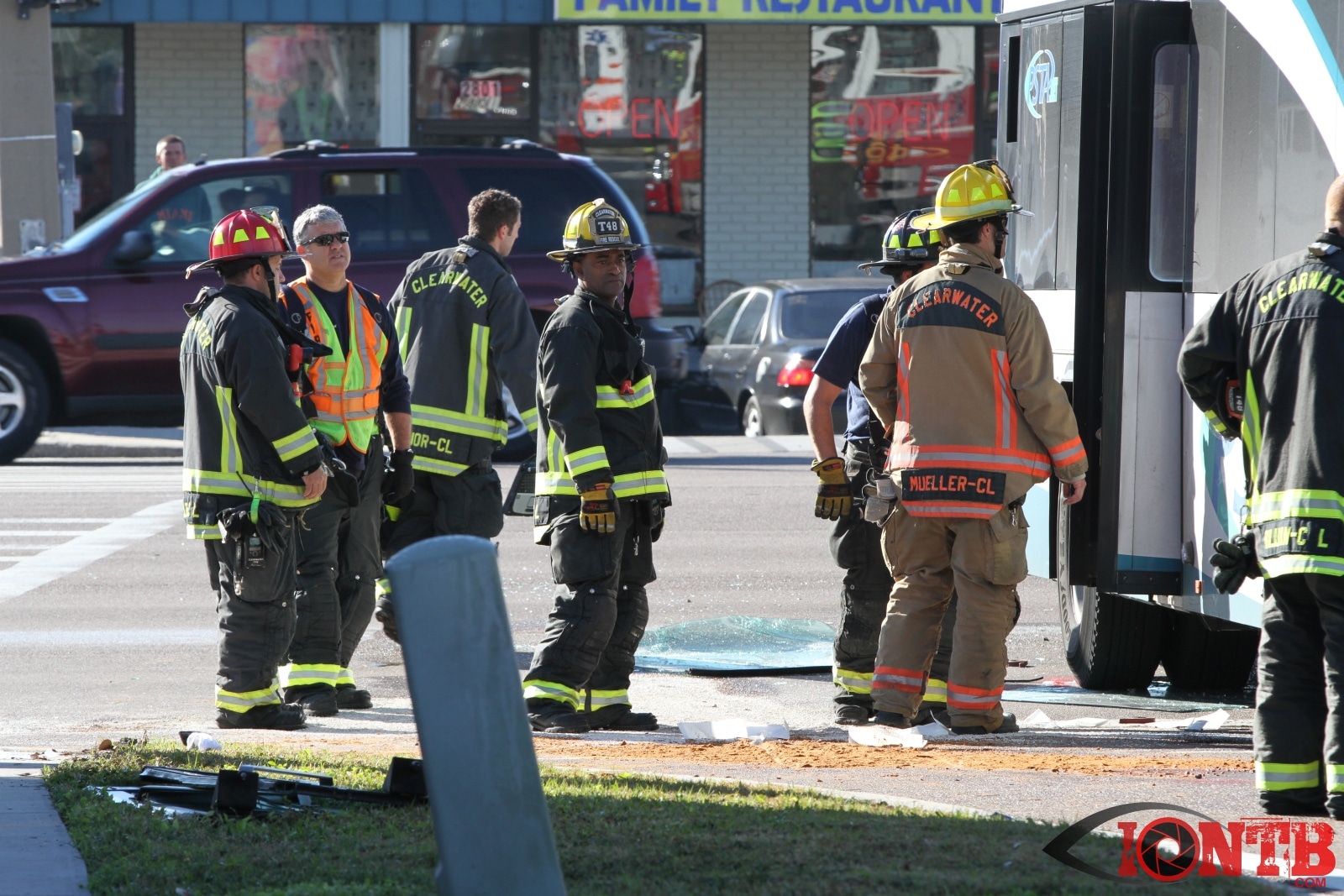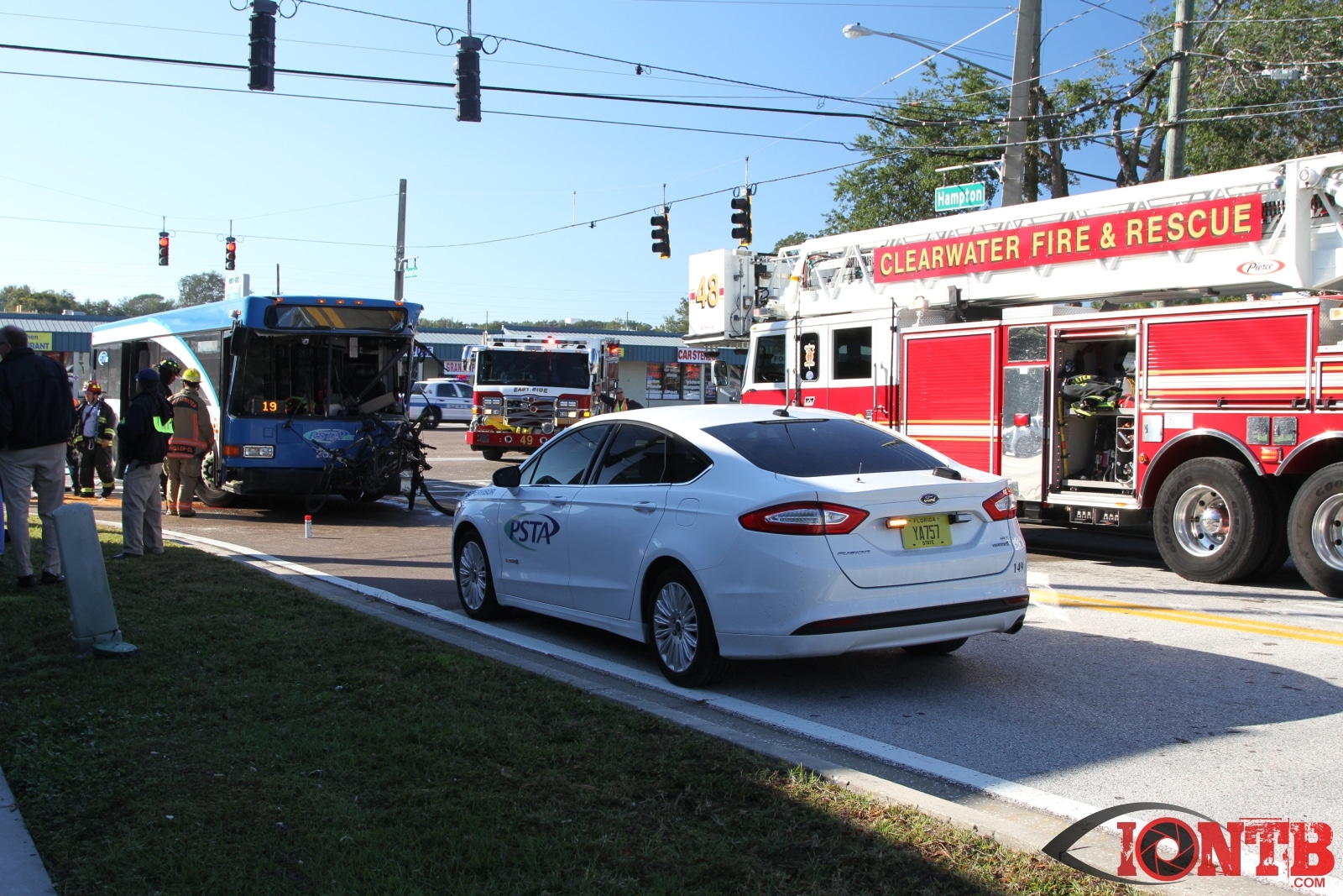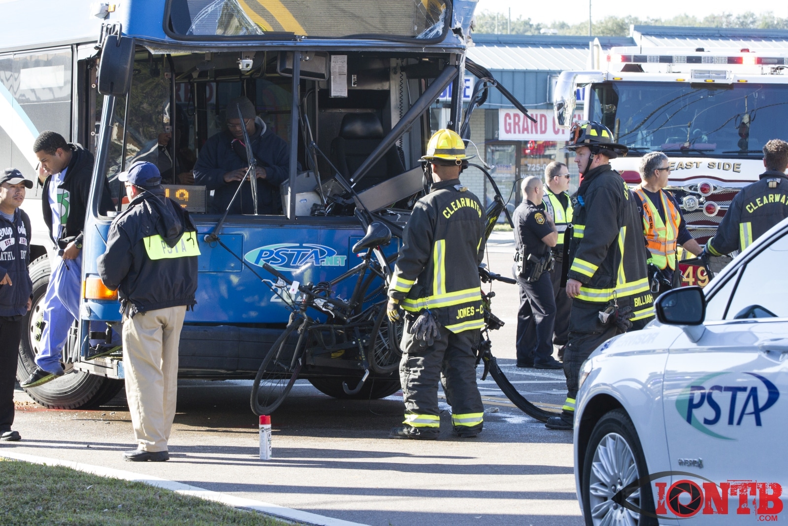 On Saturday, December 13, 2014 at approximately 8:55 AM, crews from Clearwater Fire & Rescue, Sunstar Paramedics and Clearwater Police Department responded to Gulf to Bay Blvd and Hampton Road for reports of a vehicle crash involving a dump truck and a PSTA bus.