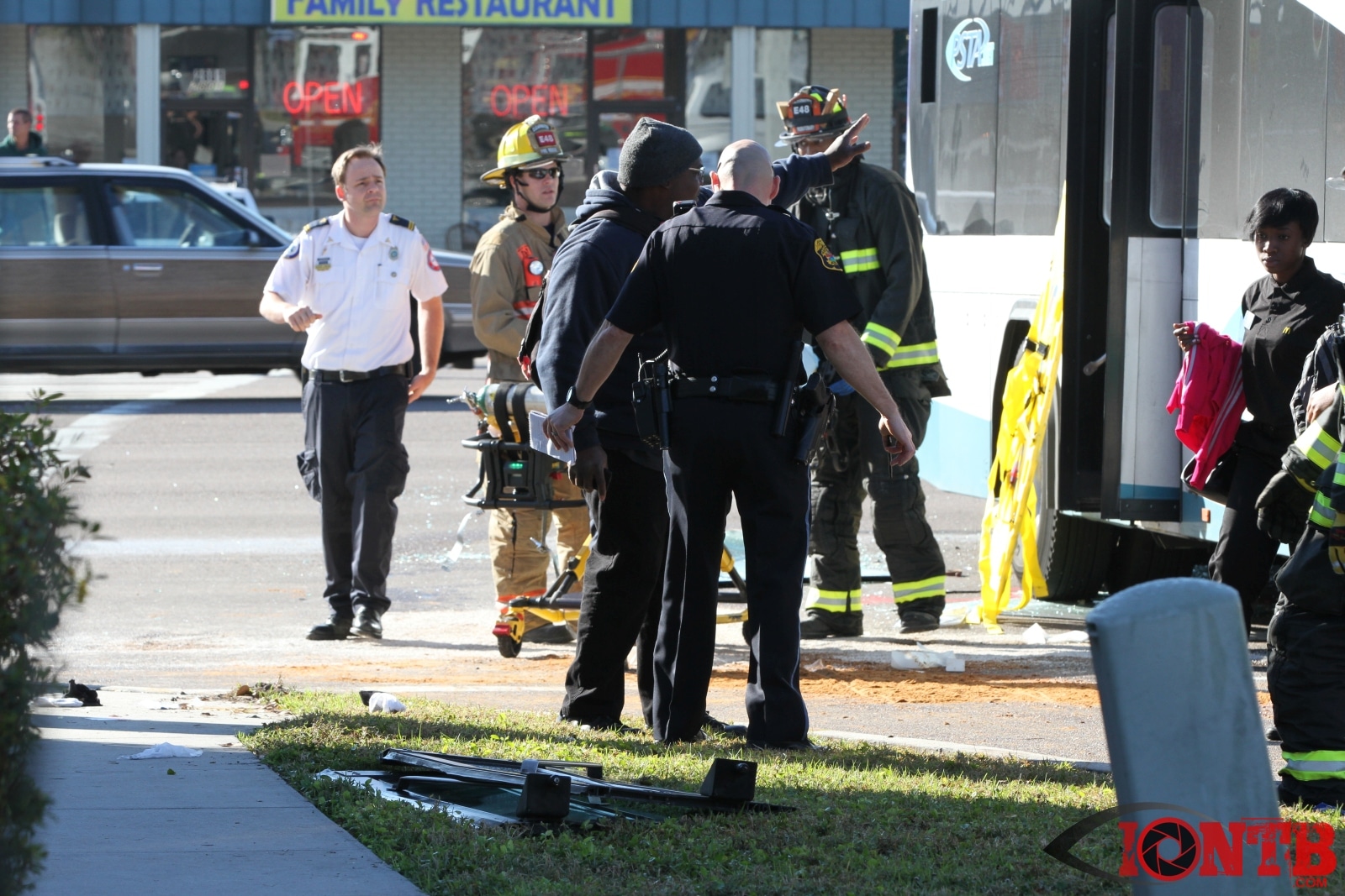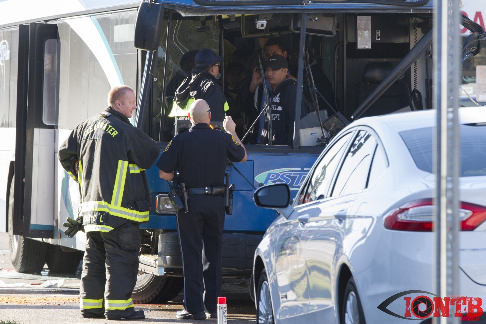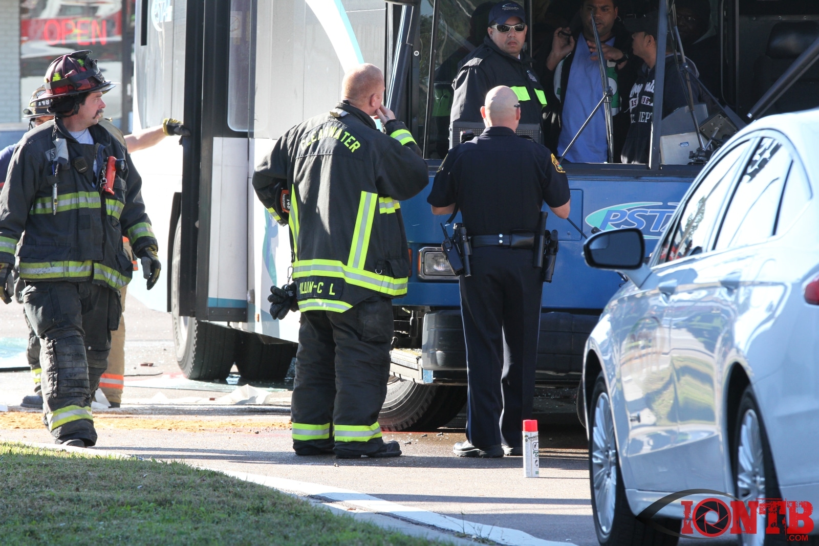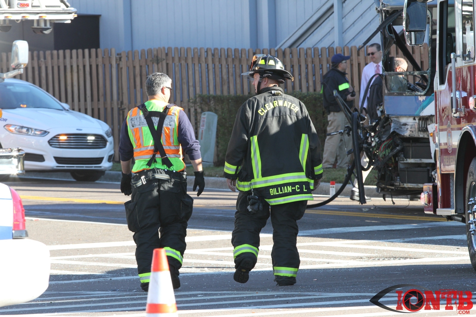 On Saturday, December 13, 2014 at approximately 8:55 AM, crews from Clearwater Fire & Rescue, Sunstar Paramedics and Clearwater Police Department responded to Gulf to Bay Blvd and Hampton Road for reports of a vehicle crash involving a dump truck and a PSTA bus.