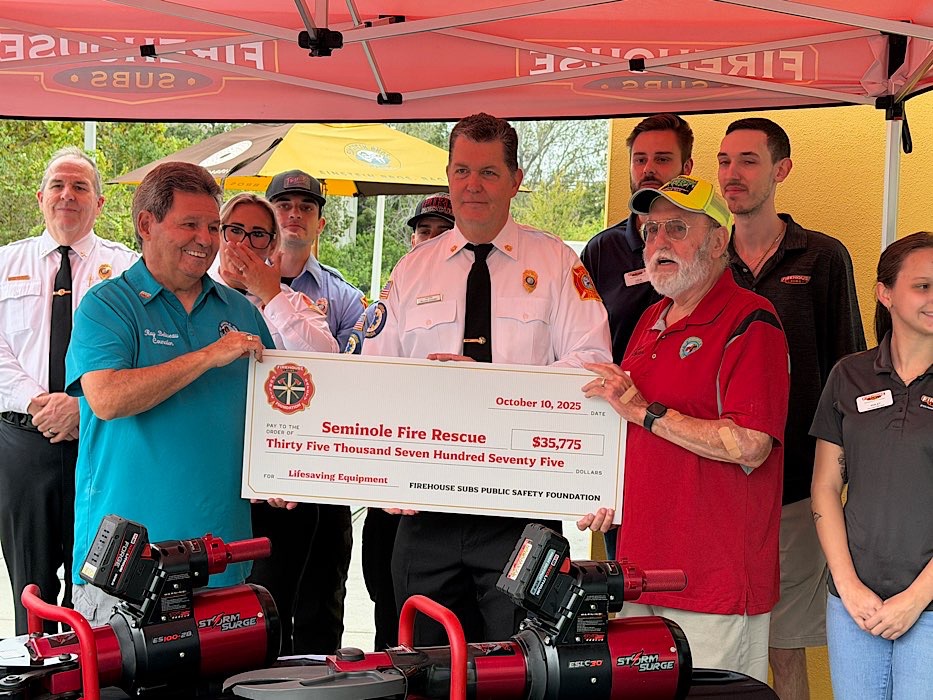 The $35,775 grant was announced Friday, October 10, during a ribbon-cutting ceremony celebrating the grand opening of Firehouse Subs’ 1,400th restaurant in Clearwater, Florida. Seminole Fire Rescue Division Chief Rob Williams completed the grant application.