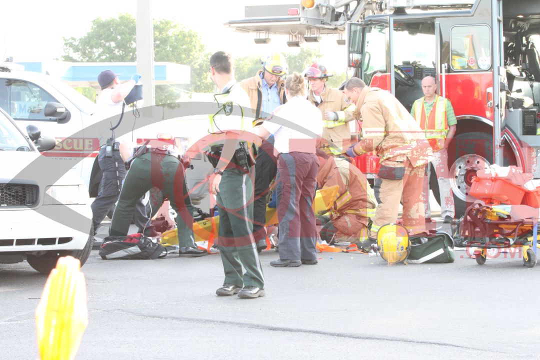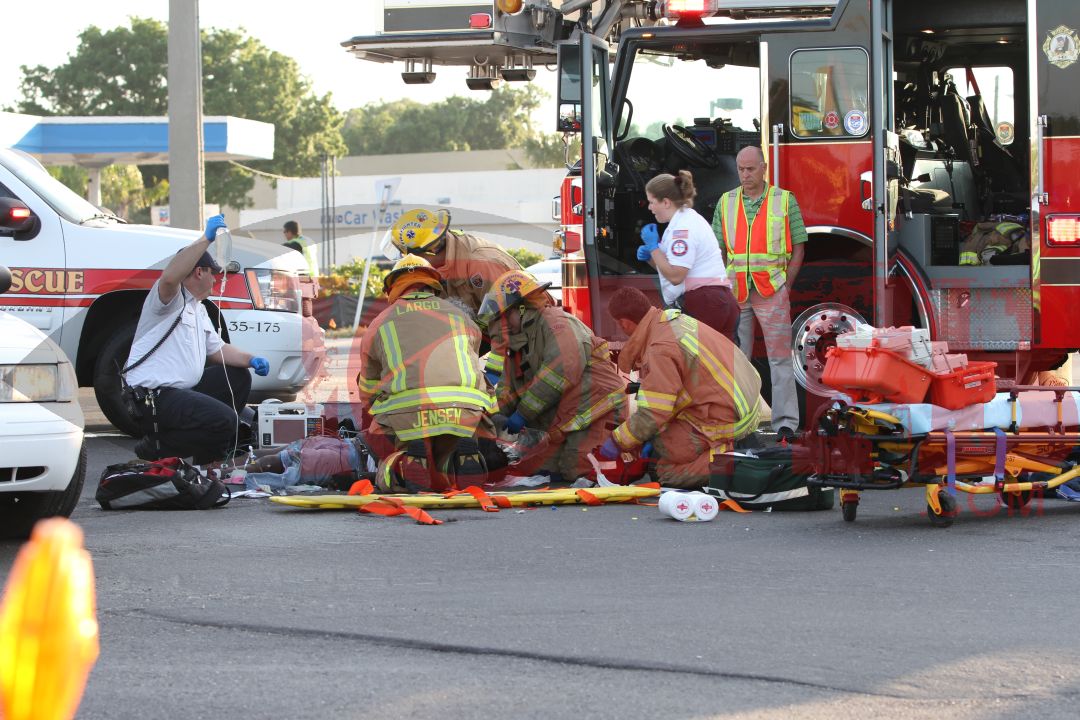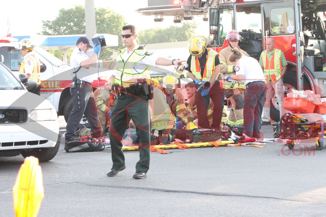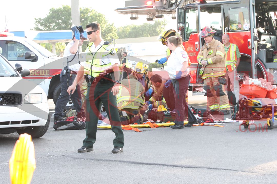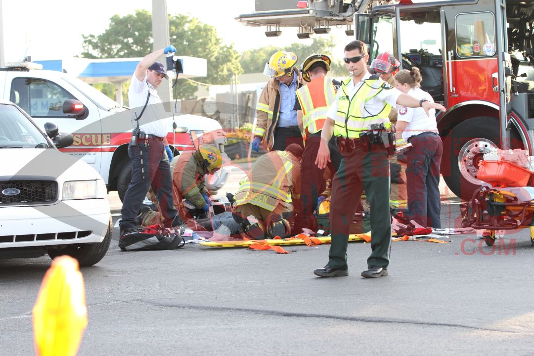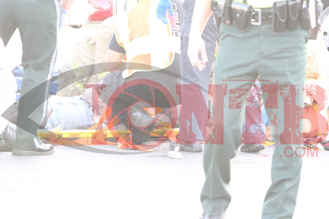 The crash happened just after 8am this morning. The male was very critically injured from impact to the vehicle windshield. CPR was in progress and he was declared a Trauma Code. Bayflight did arrive on scene and he was transported to the hospital for further medical care.