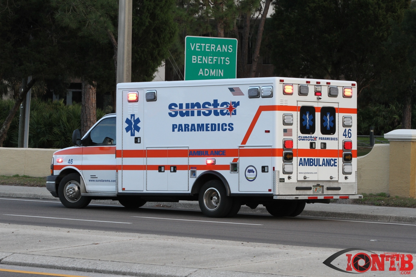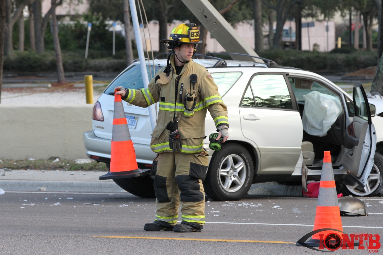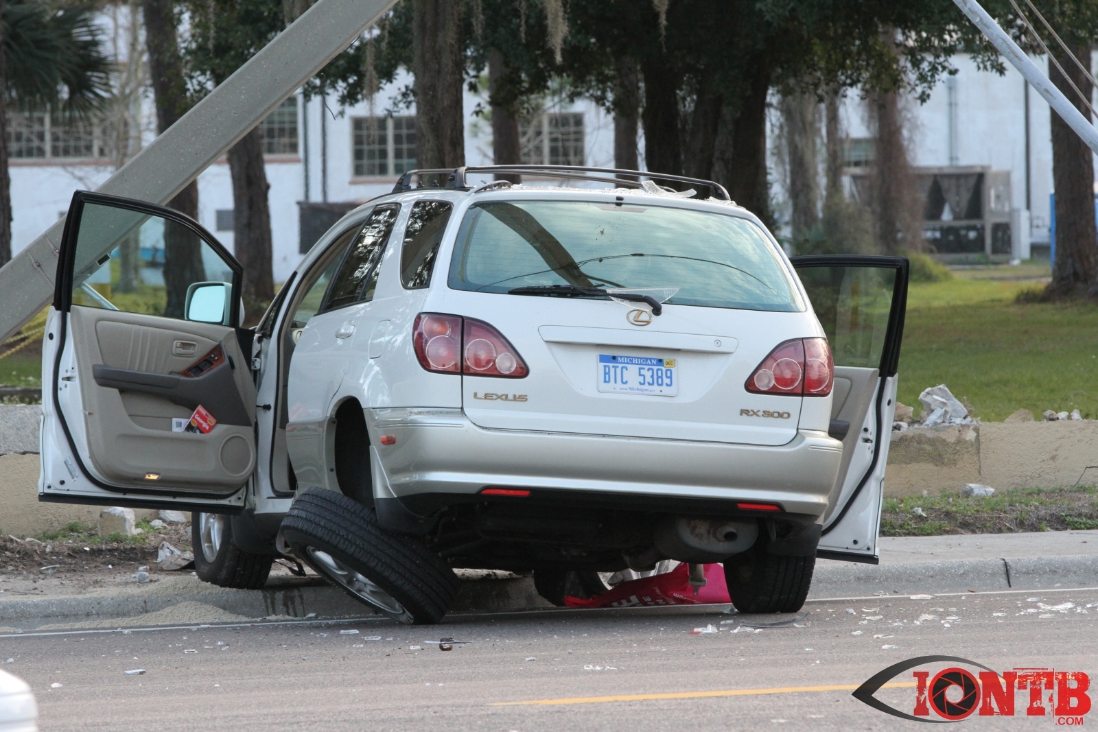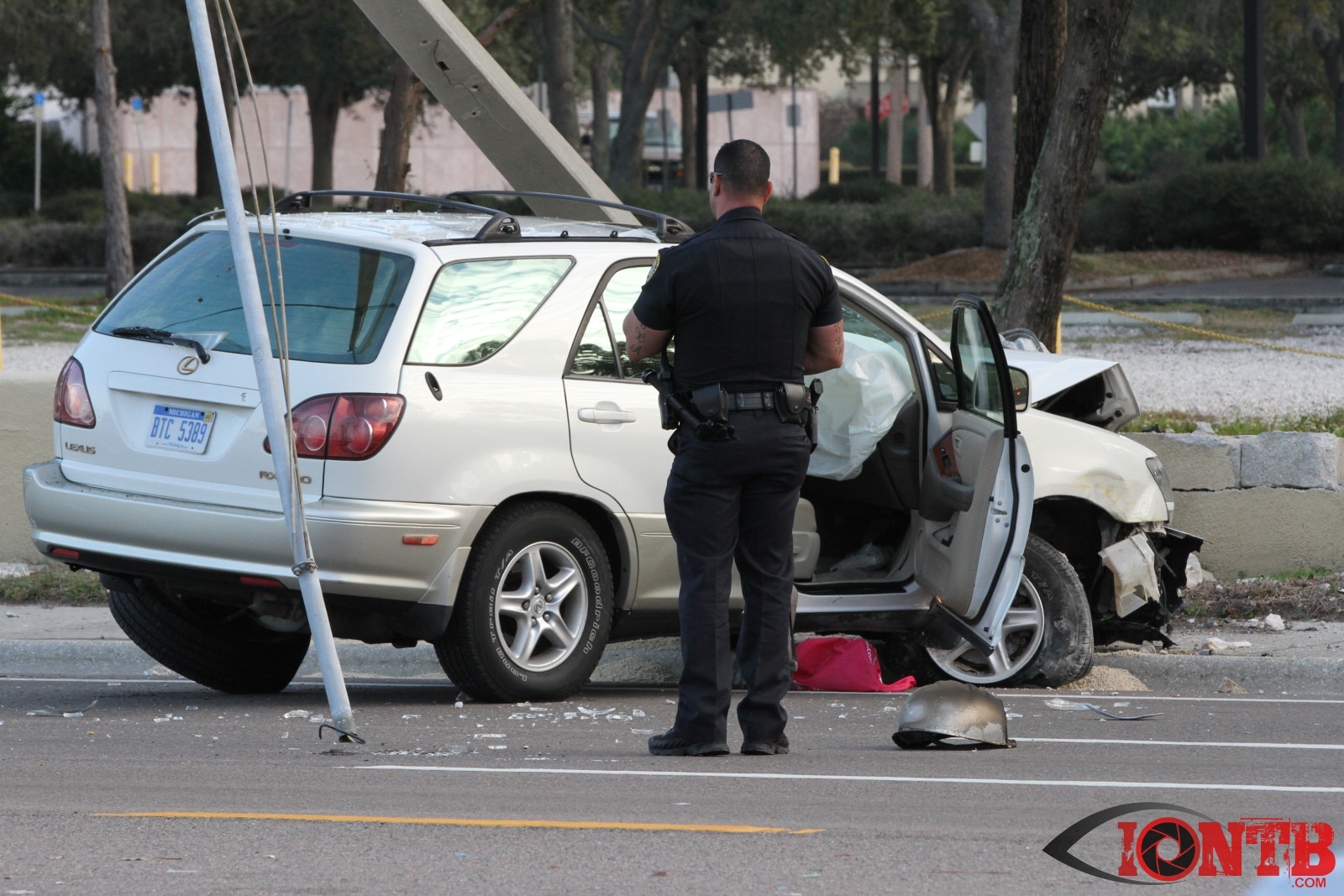 baypineslight005Single vehicle crash in front of the Bay Pines VA Medical Center injures two
