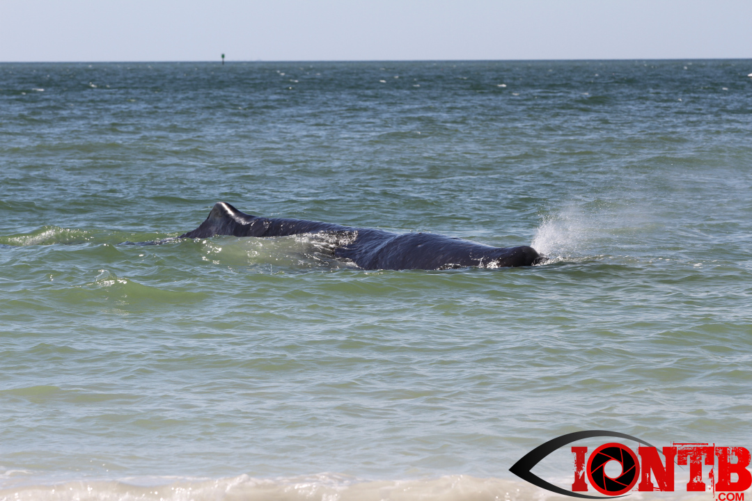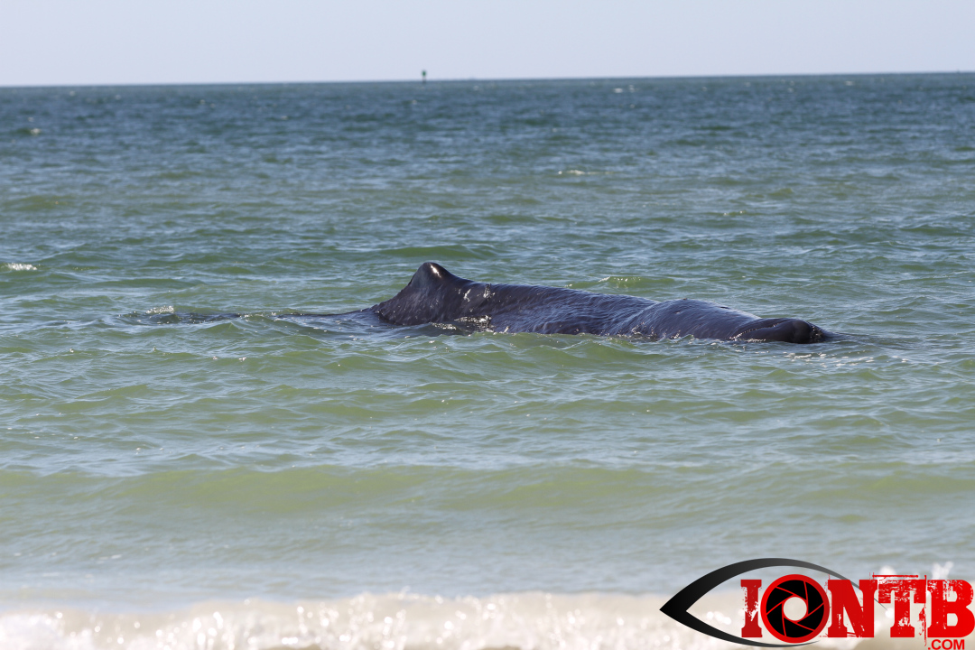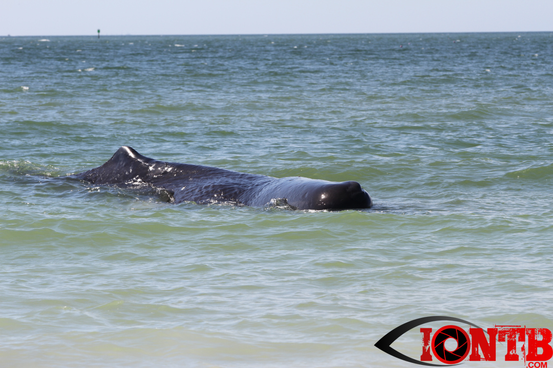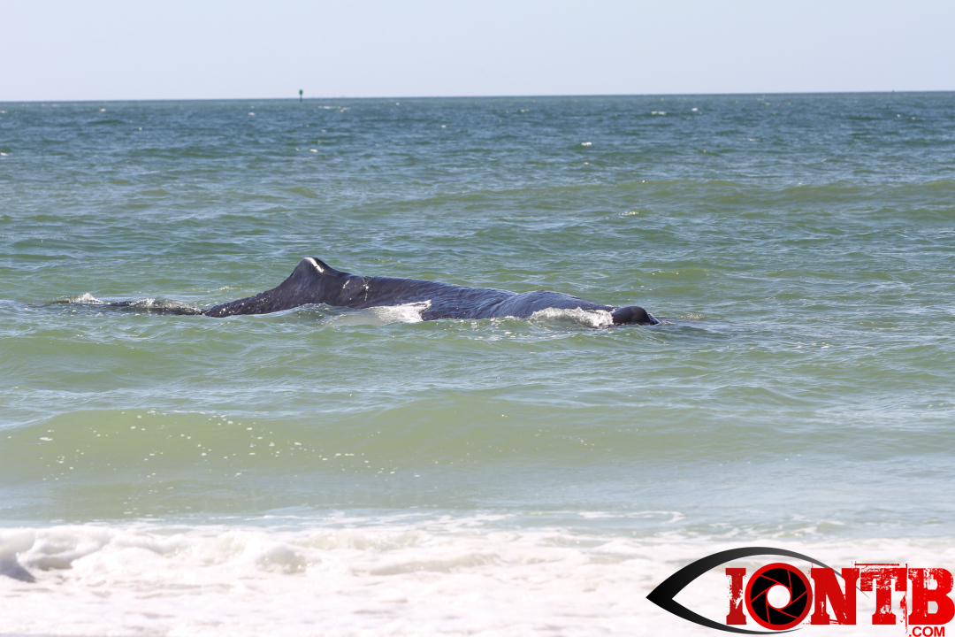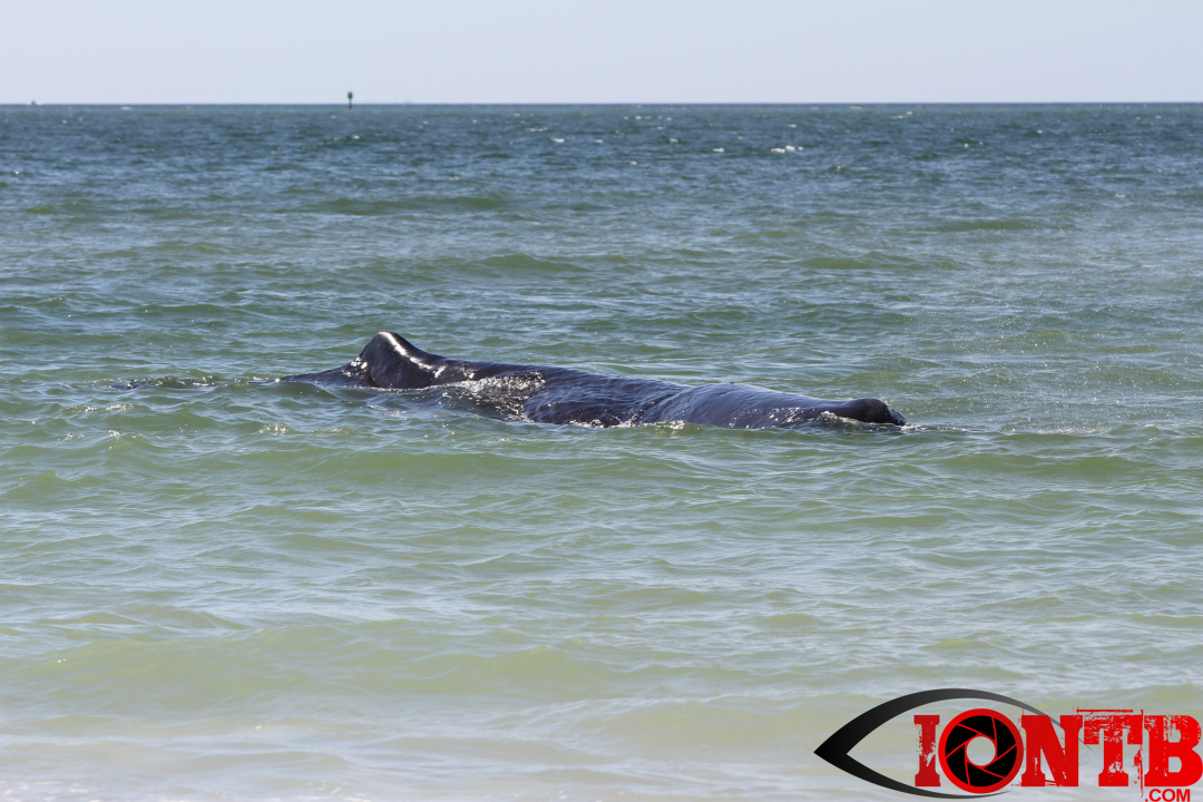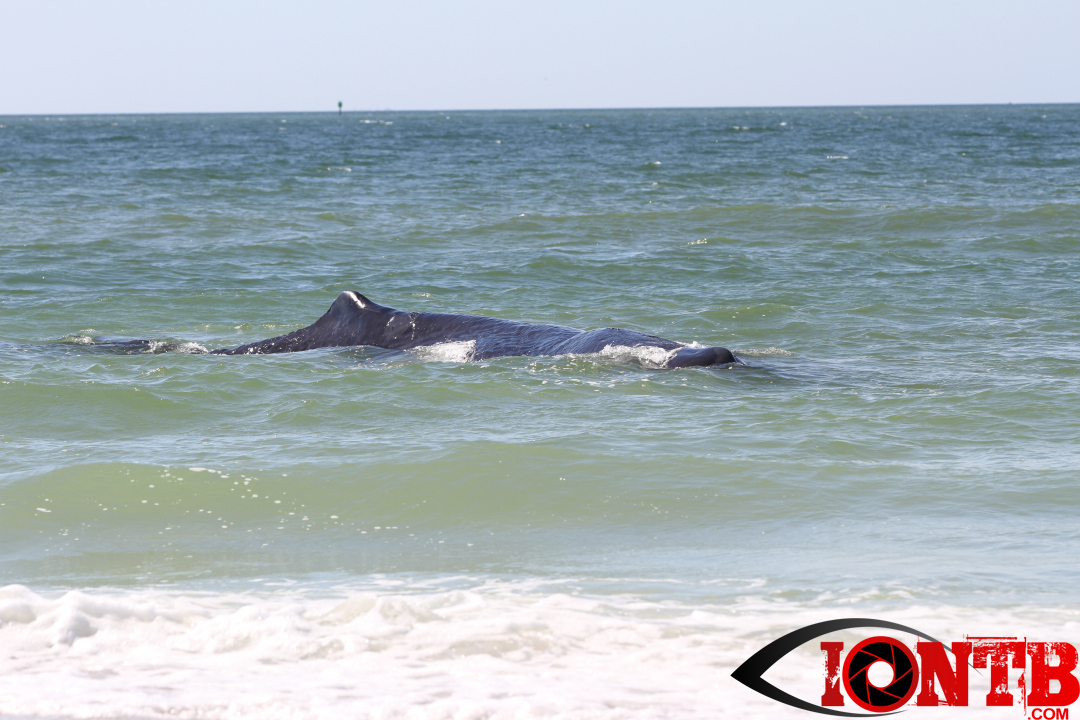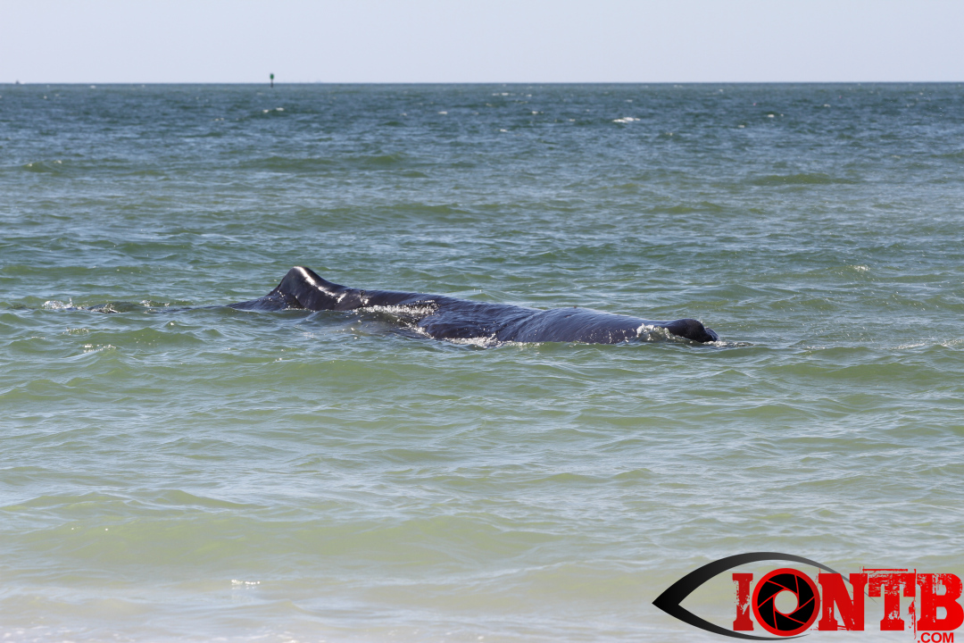 Early this morning authorities were alerted to a large whale on the shores of Madeira Beach. The whale appeared close to the 132nd Ave beach access just to the north of John’s Pass.