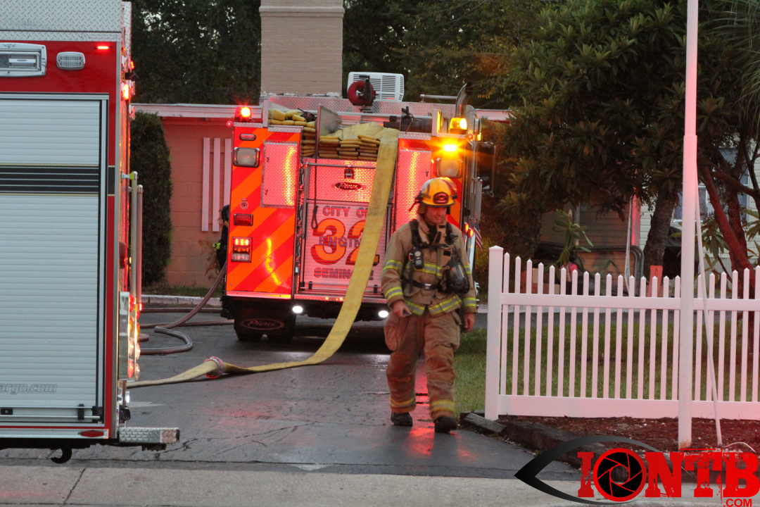 Structure fire at Heritage Village Mobile Home Park on Seminole Blvd