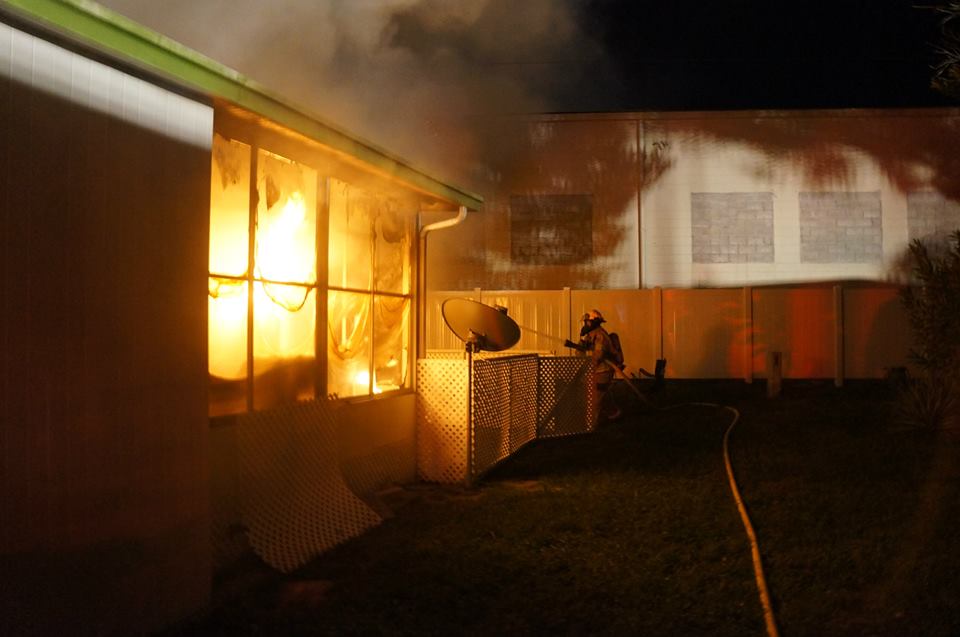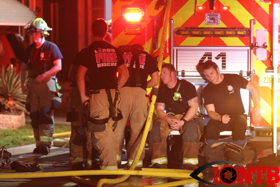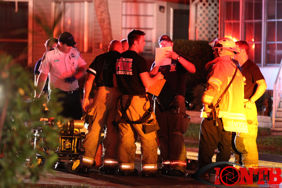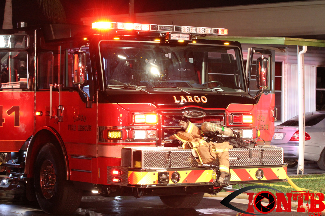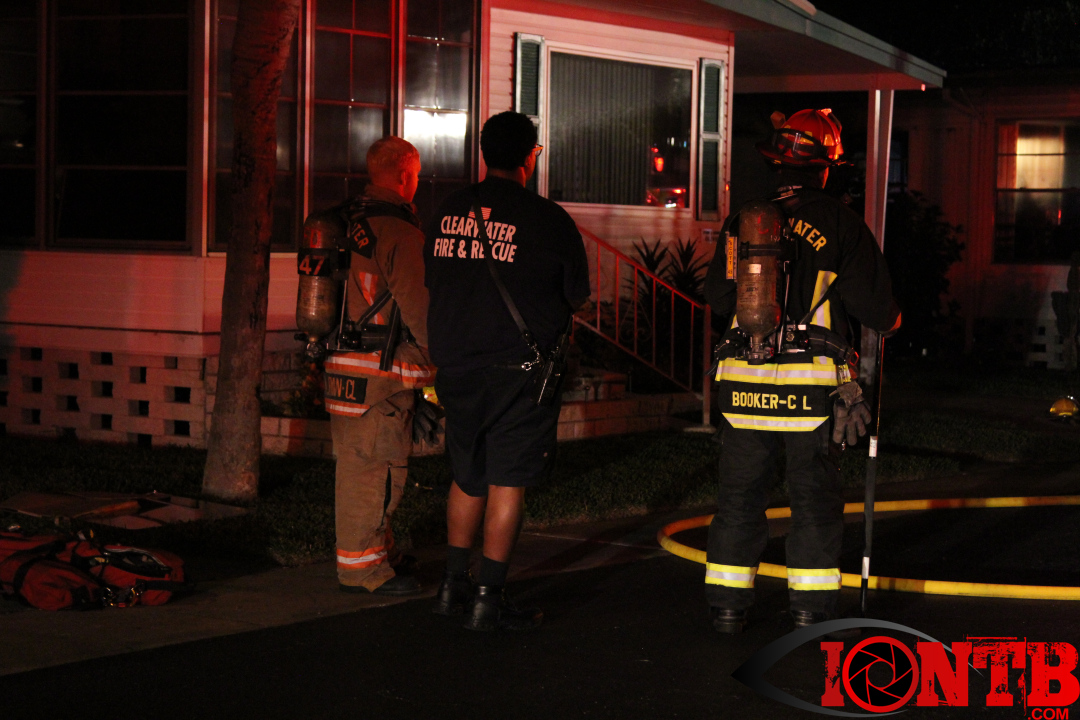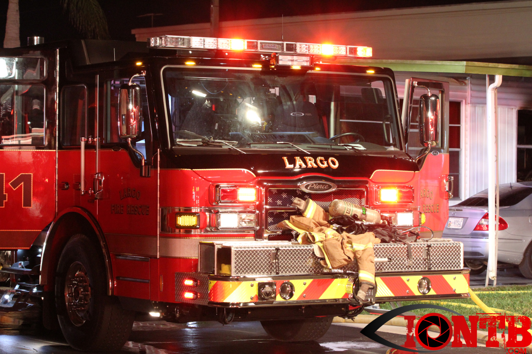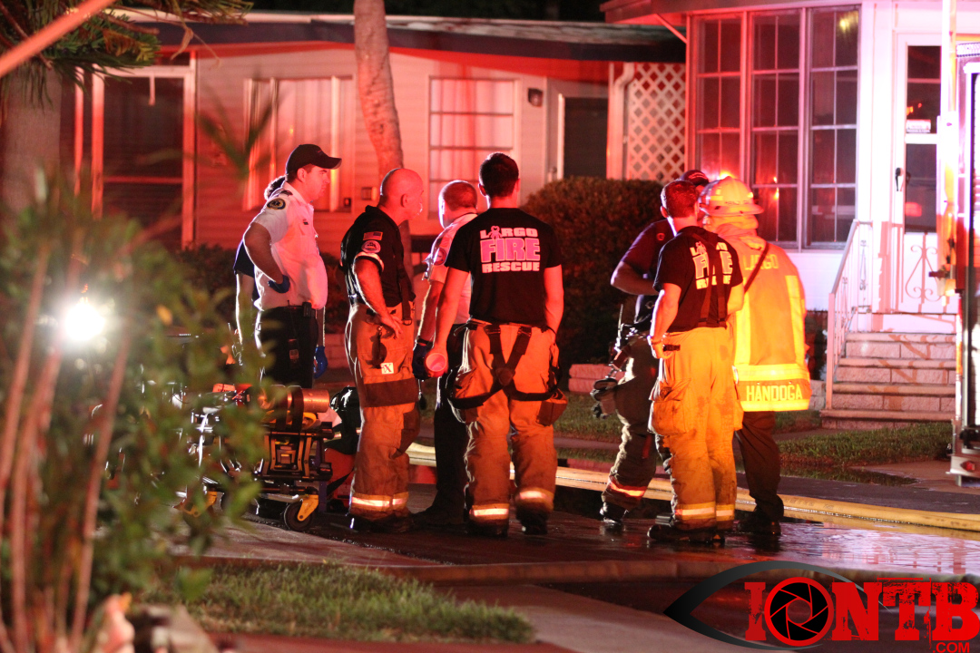 Units from Largo Fire Rescue and Clearwater Fire & Rescue were dispatched to reports of a structure fire this evening about 8:10pm. Callers to 911 initially reported that the fire was involving a vehicle next to the mobile home. Arriving units reported heavy smoke and flames involving the rear part of the structure.