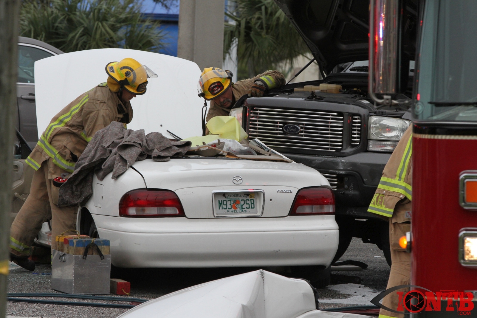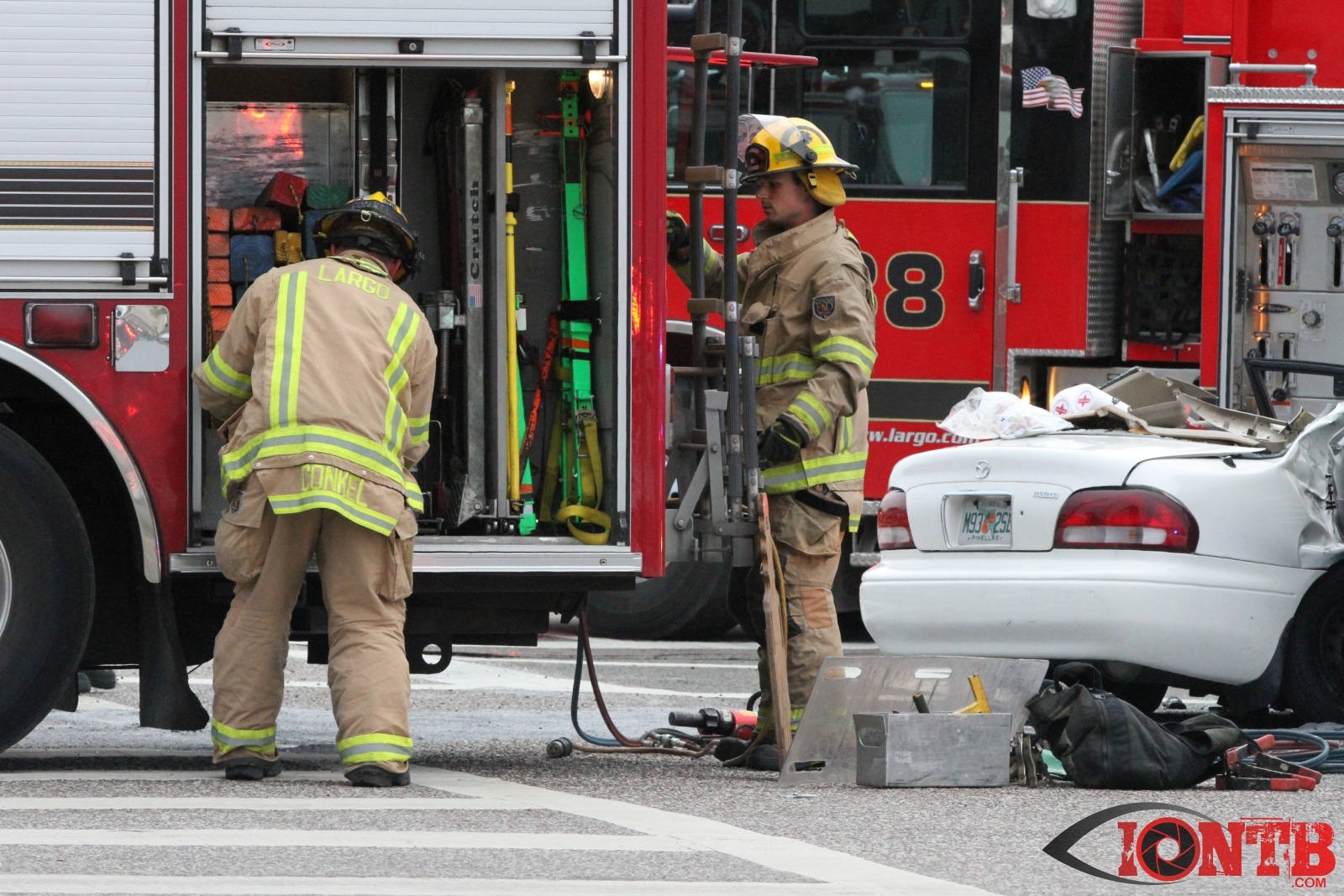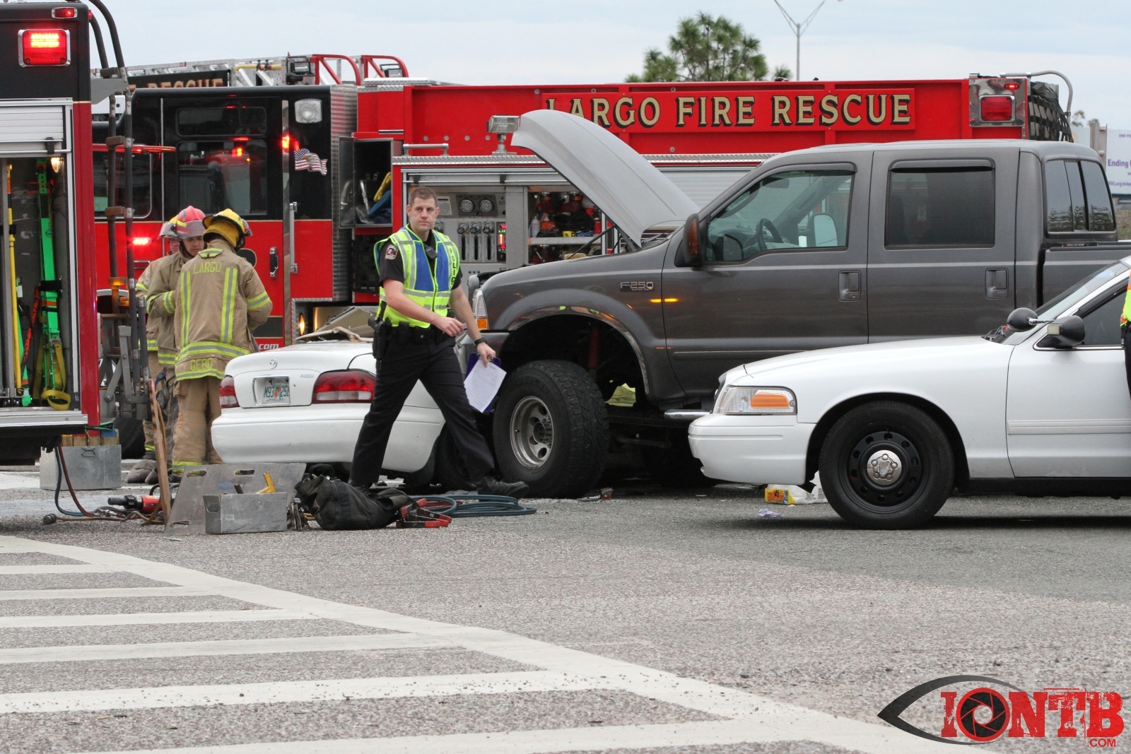 Crews from Largo Fire Rescue responded this evening about 5pm to a traffic crash in Largo. The crash occurred at the intersection of 66th Street and 142nd Avenue. A Ford F250 pickup truck collided with the passenger side of a Mazda sedan.
