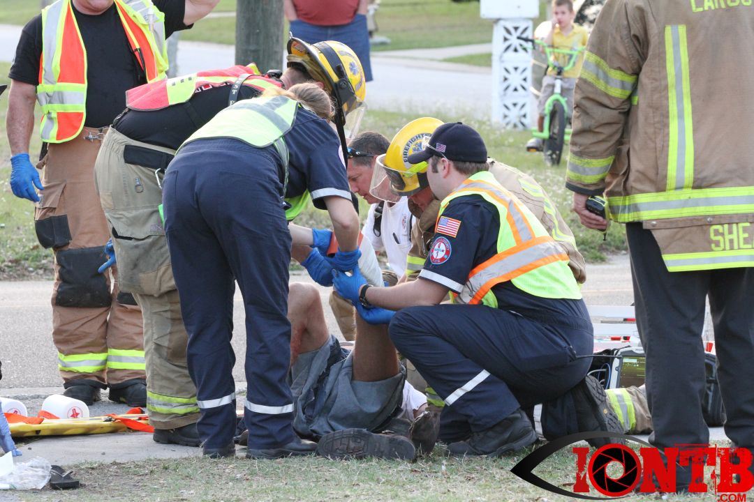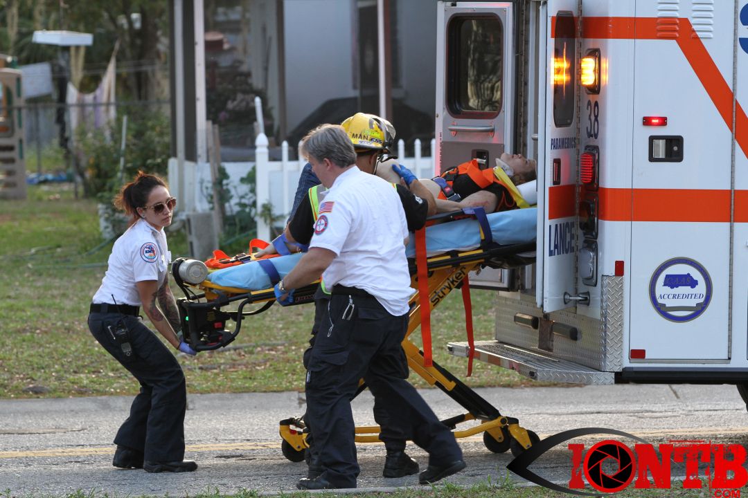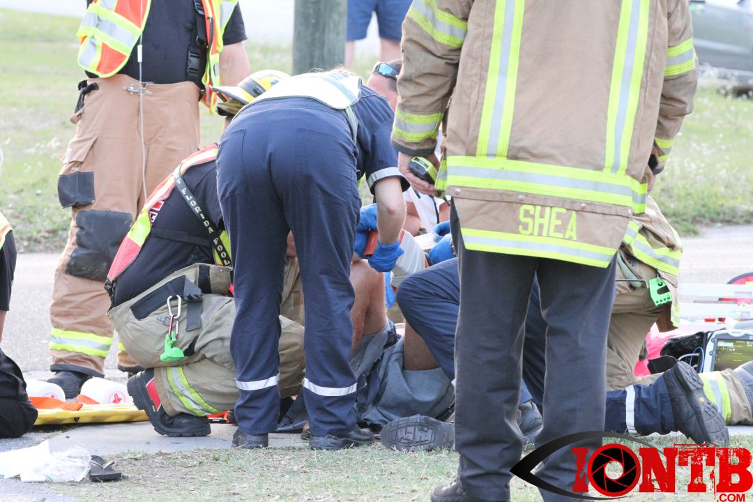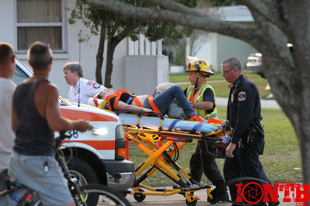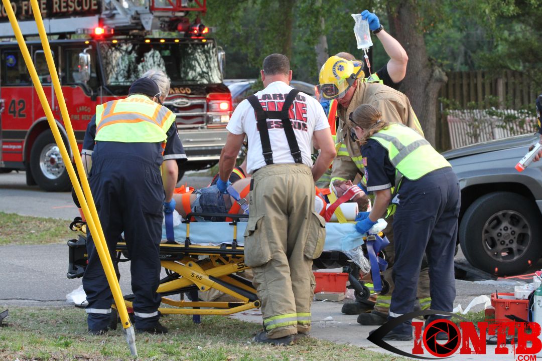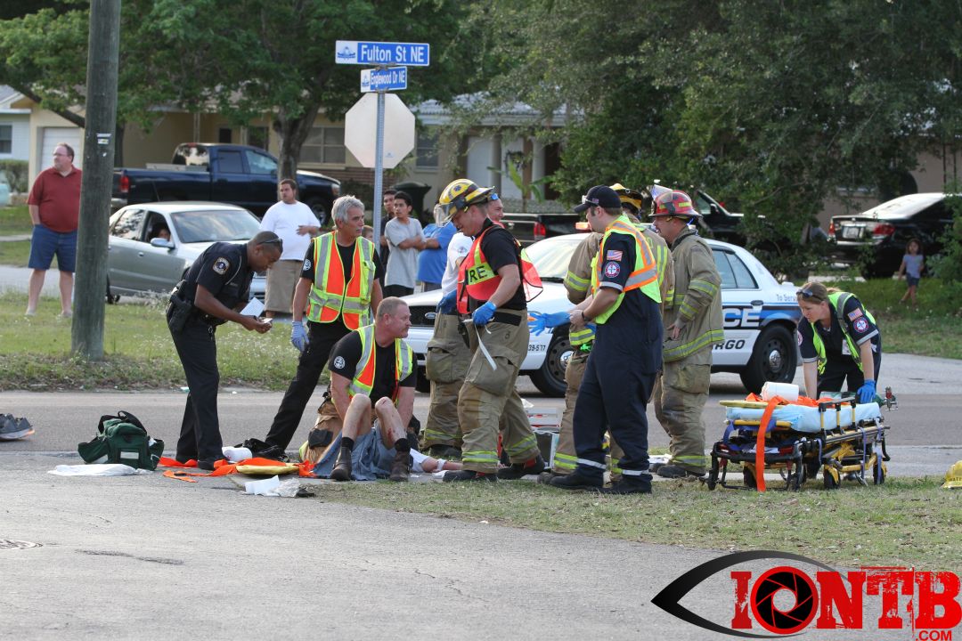 Largo Police and Fire Rescue were dispatched to a traffic incident about 7:20pm near the intersection of Eastbay Drive and Fulton Street. The crash was located just North of the intersection where a motorcycle was wedged under the front of a Jeep Cherokee. Both riders on the motorcycle were in the roadway when rescue workers arrived. The motorcycle was being driven by a male accompanied by a female passenger. The female passenger was declared a Trauma Alert and was transported to Bayfront Medical Center. A second Sunstar Unit responded to also transport the male driver to Bayfront Medical Center. Both individuals suffered obvious injuries to their lower extremities. The driver of the Jeep did not appear to have suffered any injuries in the crash.