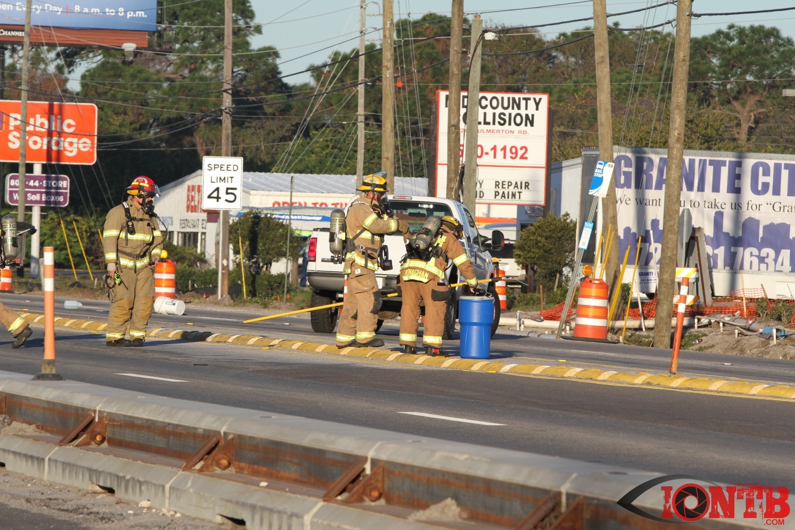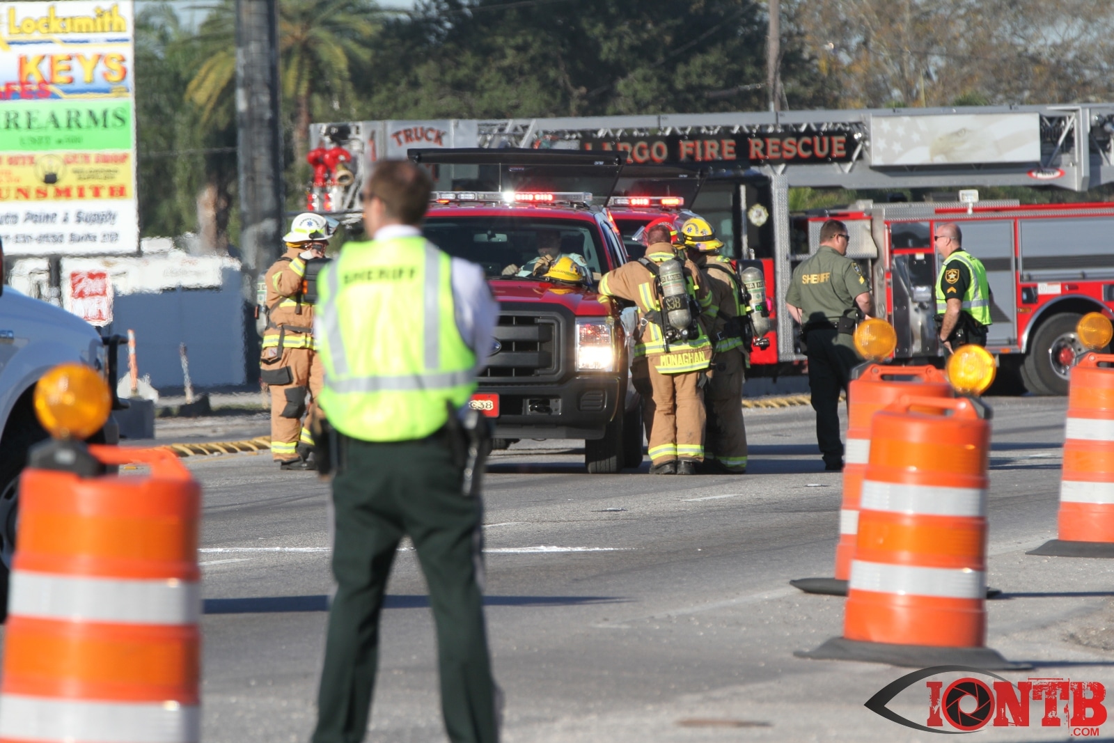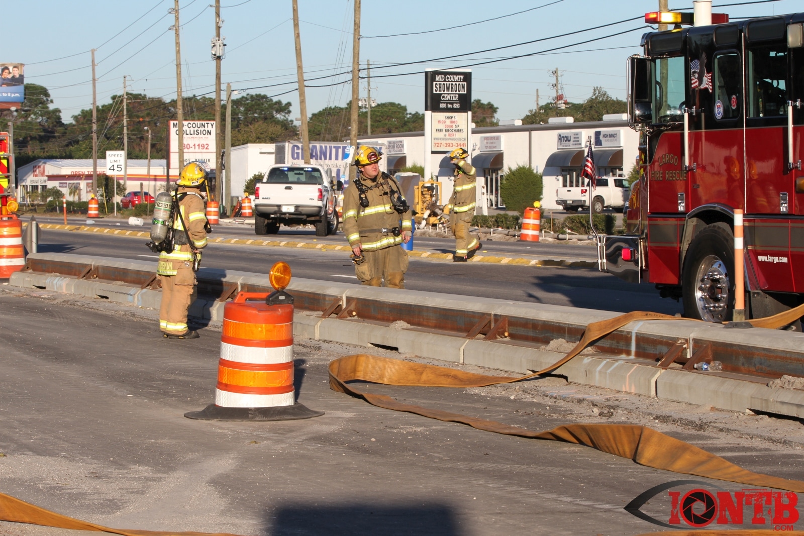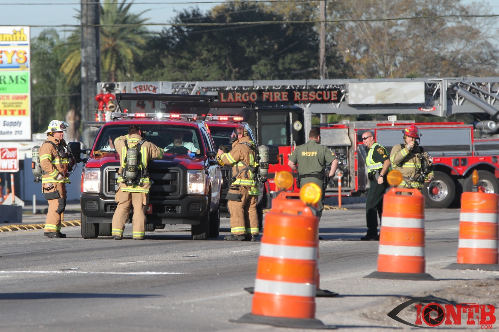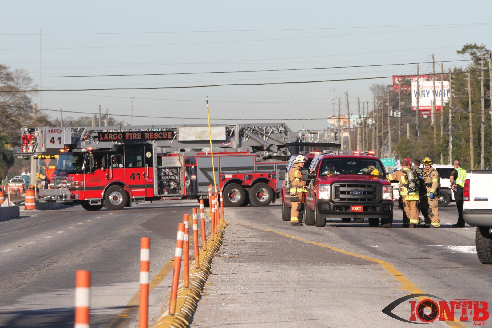 Crews from Largo Fire Rescue responded with multiple units to evaluate the chemicals. Ulmerton Road was closed in both directions from about 7:30am until 9:15am. Crews worked to neutralize what appeared to be some acid which had mixed with a liquid resin product. Officials were called in from the Florida Department of Transportation to complete the cleanup and evaluate the roadway surface.