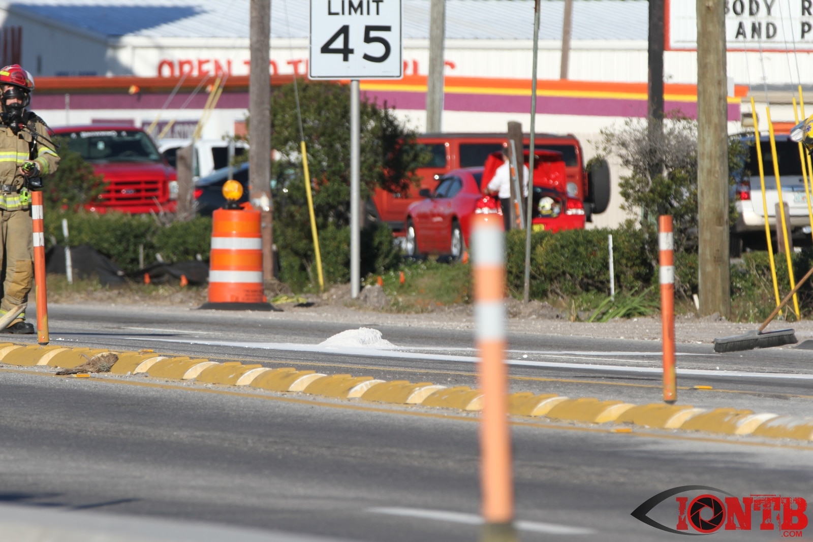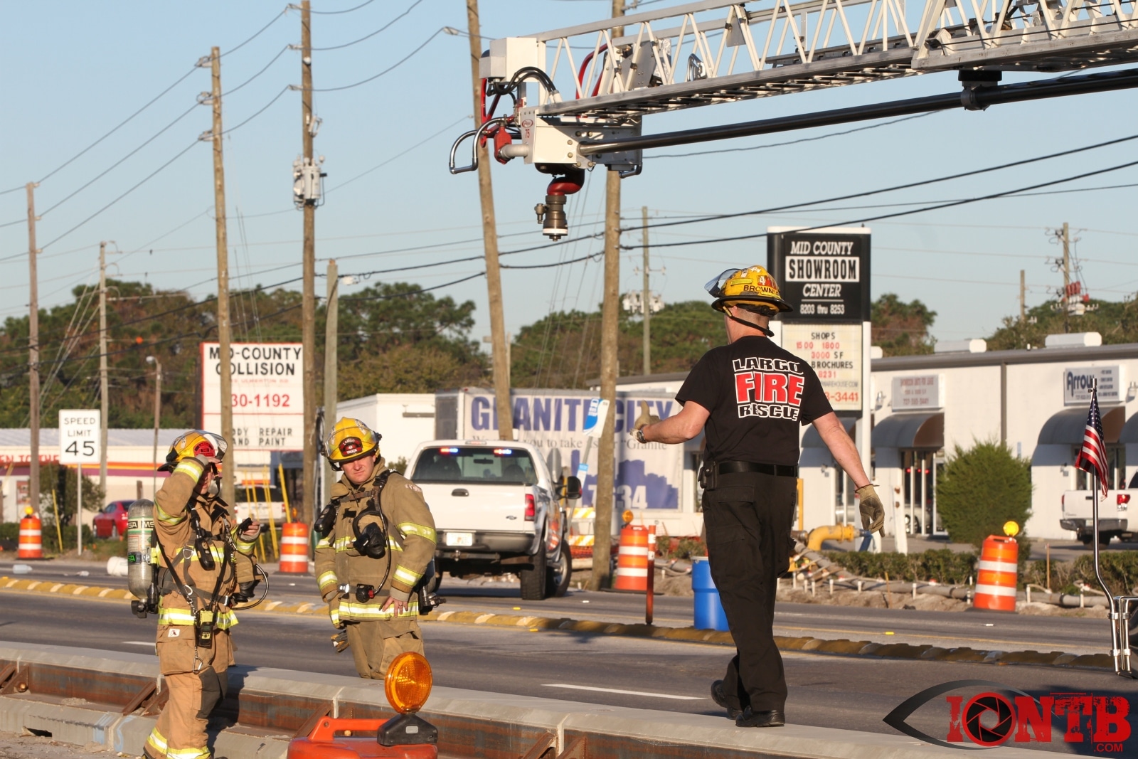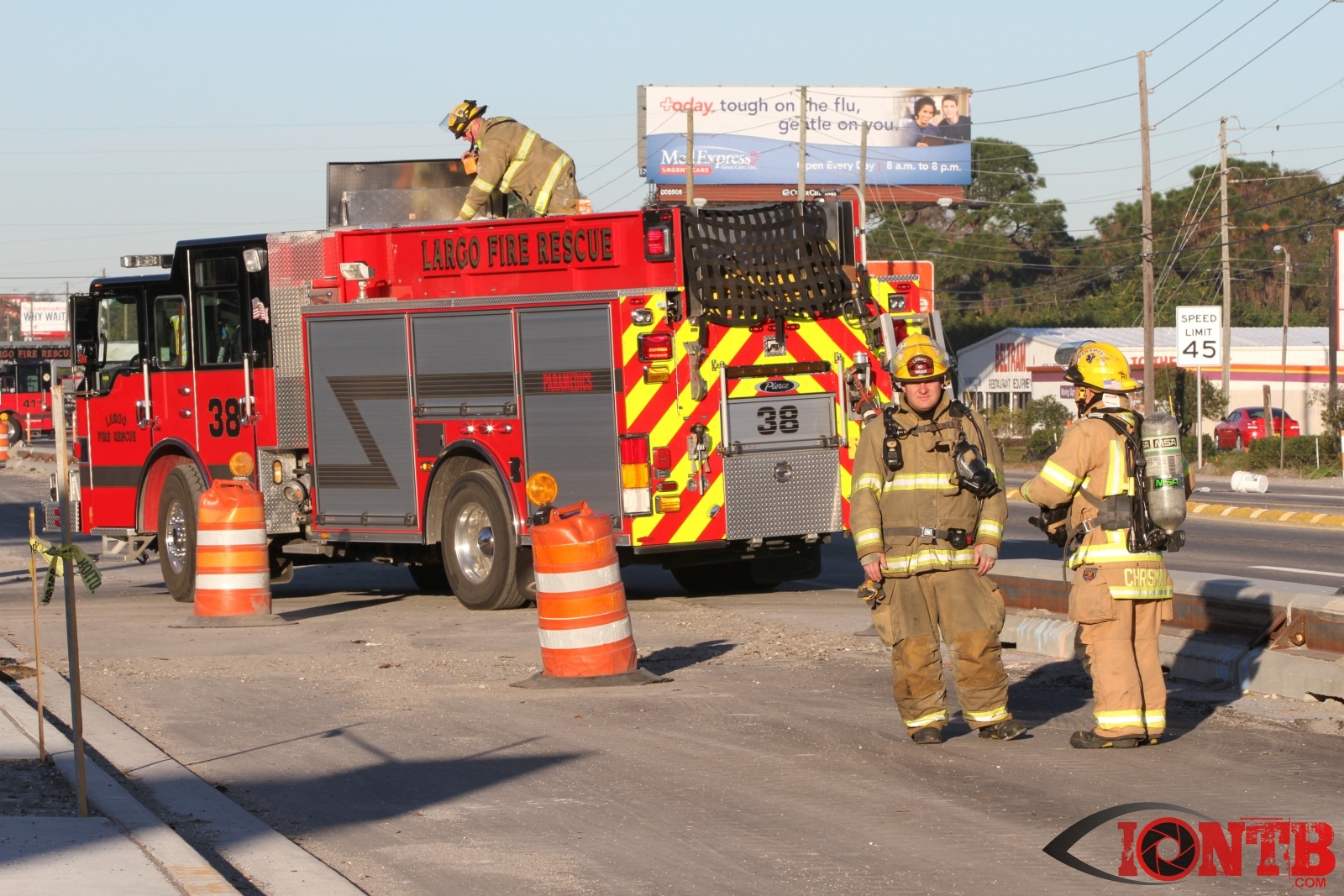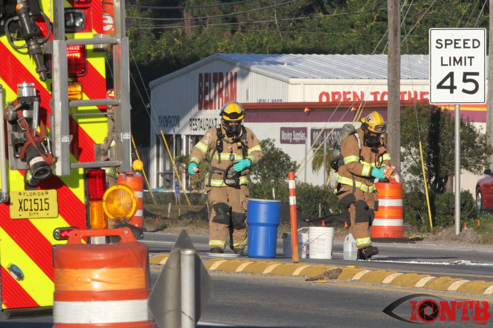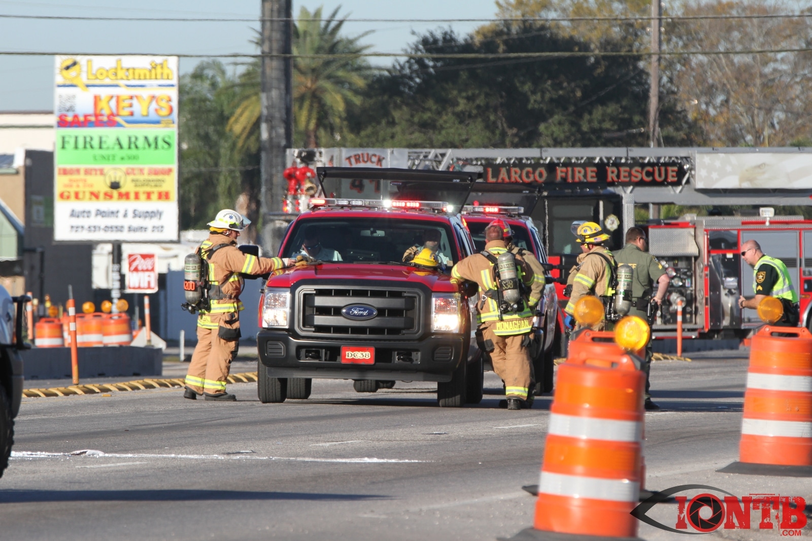 Crews from Largo Fire Rescue responded with multiple units to evaluate the chemicals. Ulmerton Road was closed in both directions from about 7:30am until 9:15am. Crews worked to neutralize what appeared to be some acid which had mixed with a liquid resin product. Officials were called in from the Florida Department of Transportation to complete the cleanup and evaluate the roadway surface.