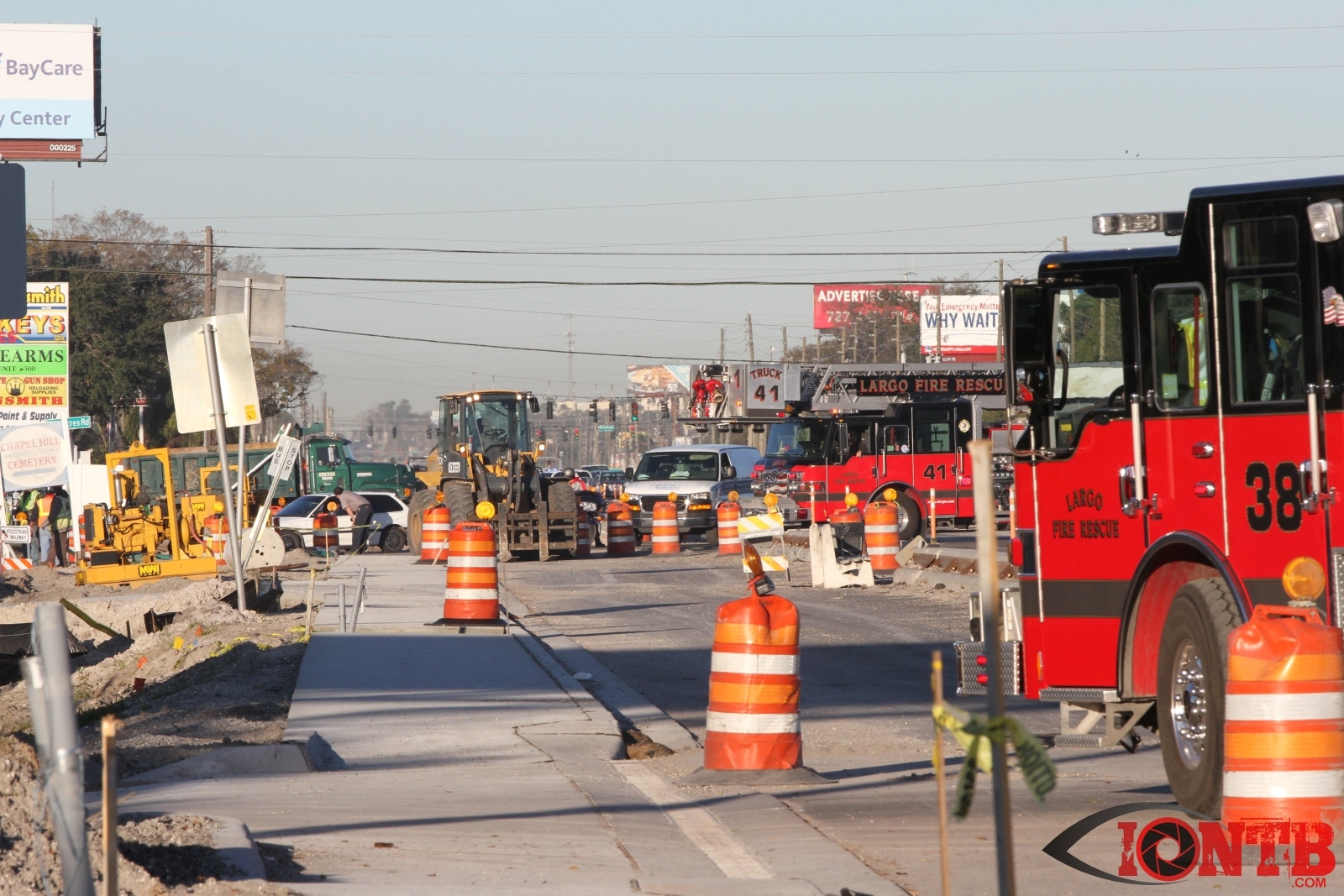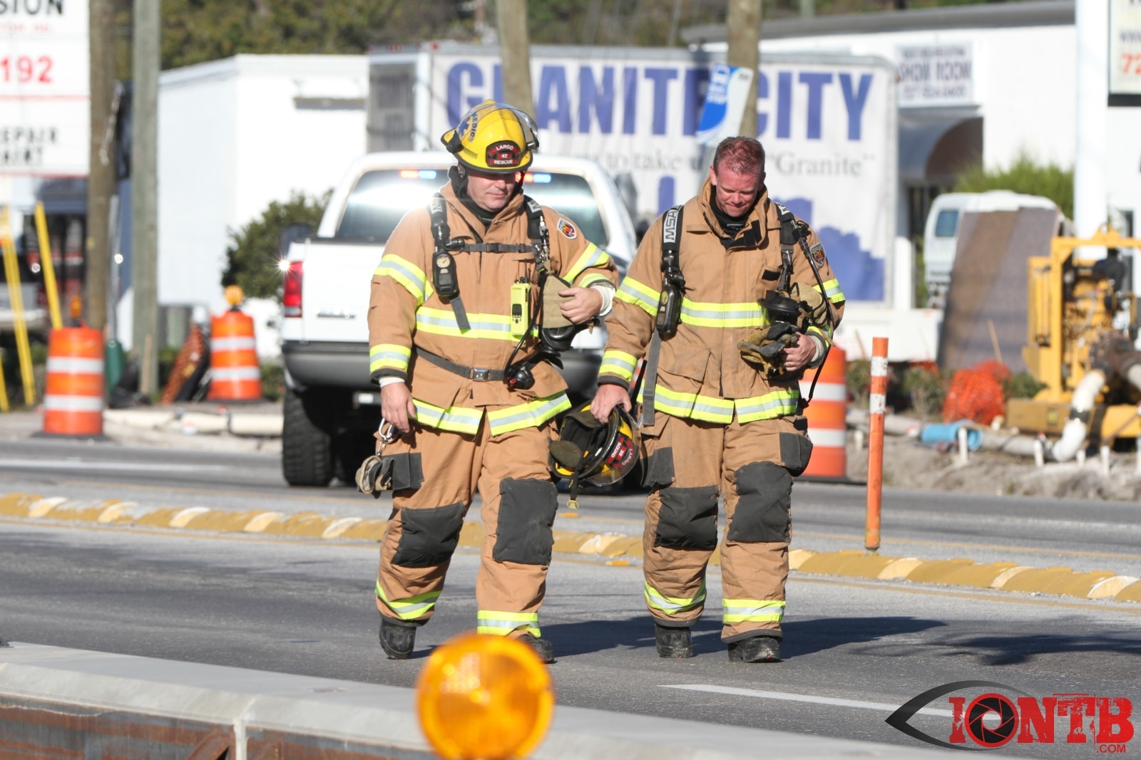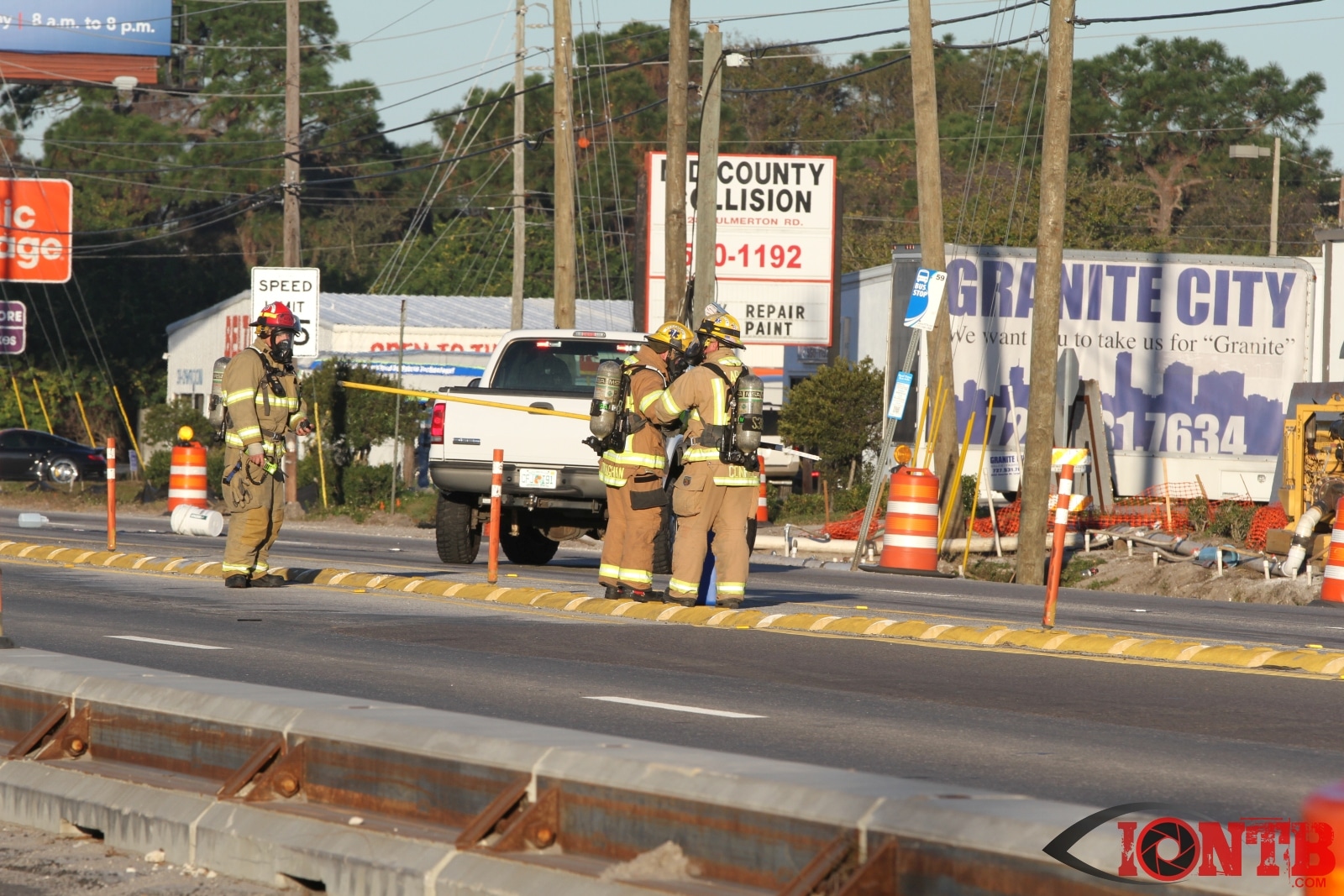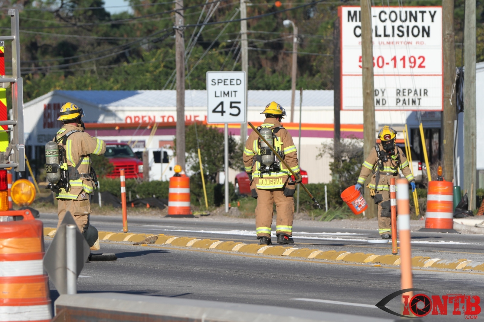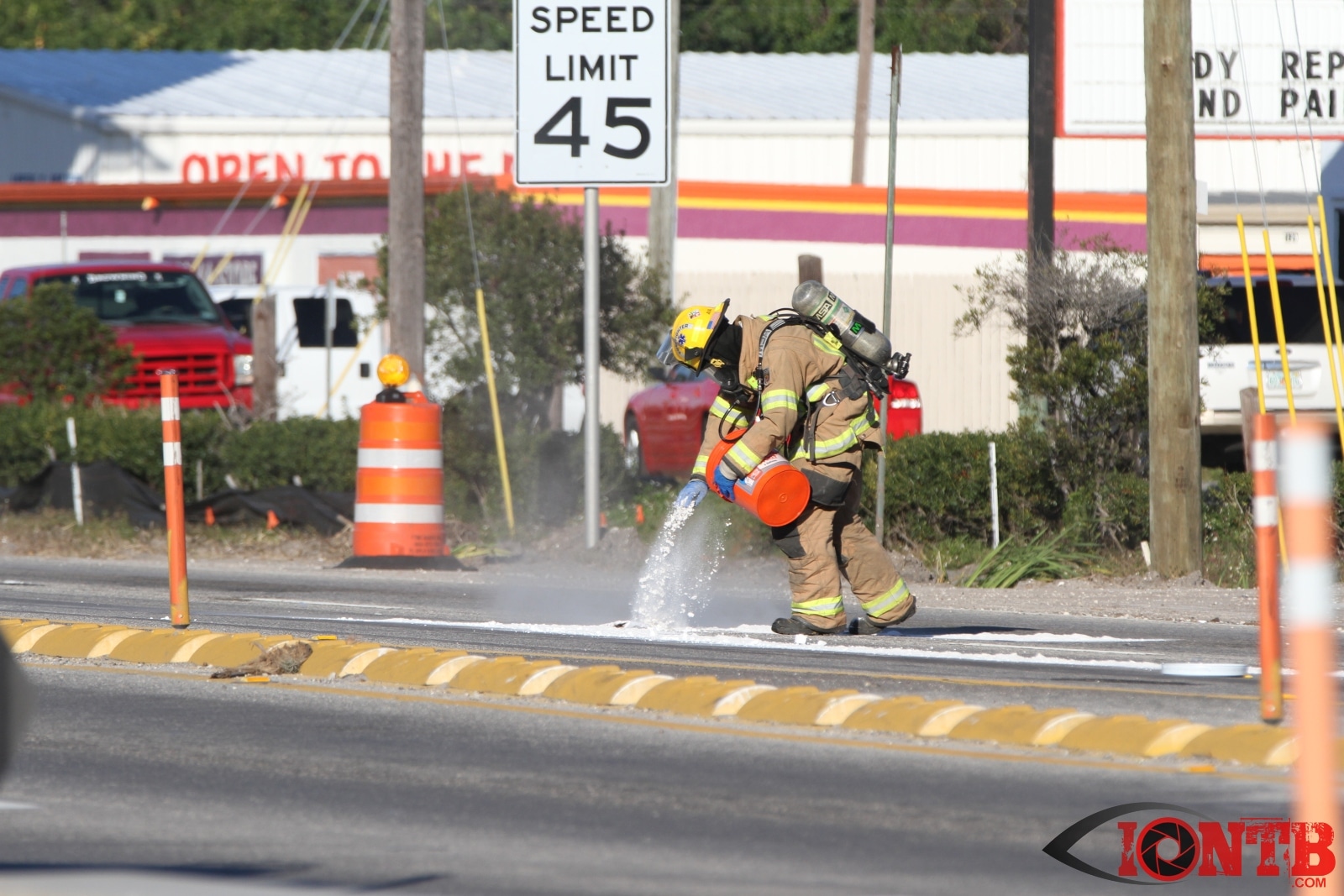 Crews from Largo Fire Rescue responded with multiple units to evaluate the chemicals. Ulmerton Road was closed in both directions from about 7:30am until 9:15am. Crews worked to neutralize what appeared to be some acid which had mixed with a liquid resin product. Officials were called in from the Florida Department of Transportation to complete the cleanup and evaluate the roadway surface.