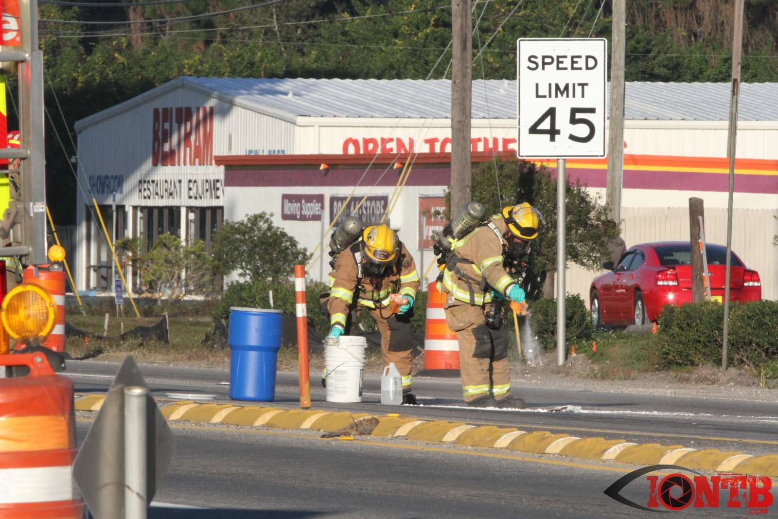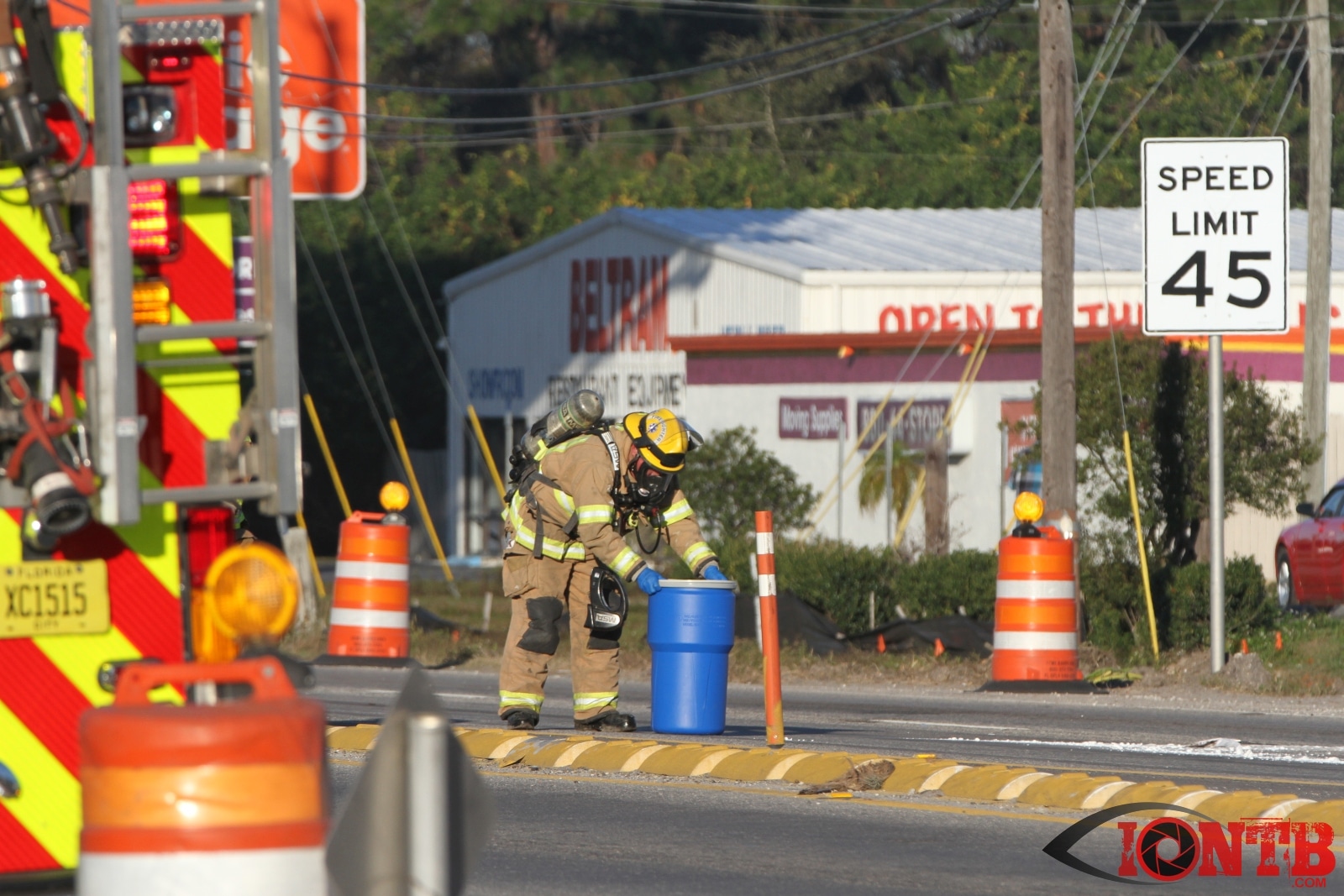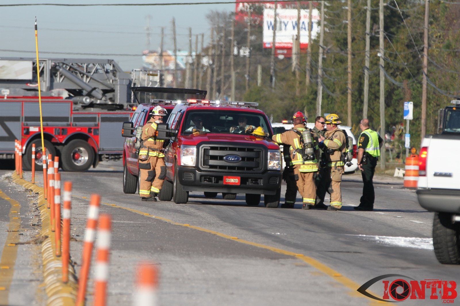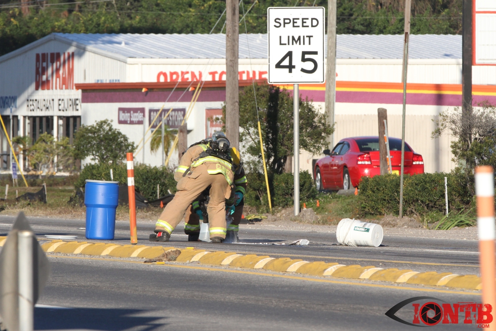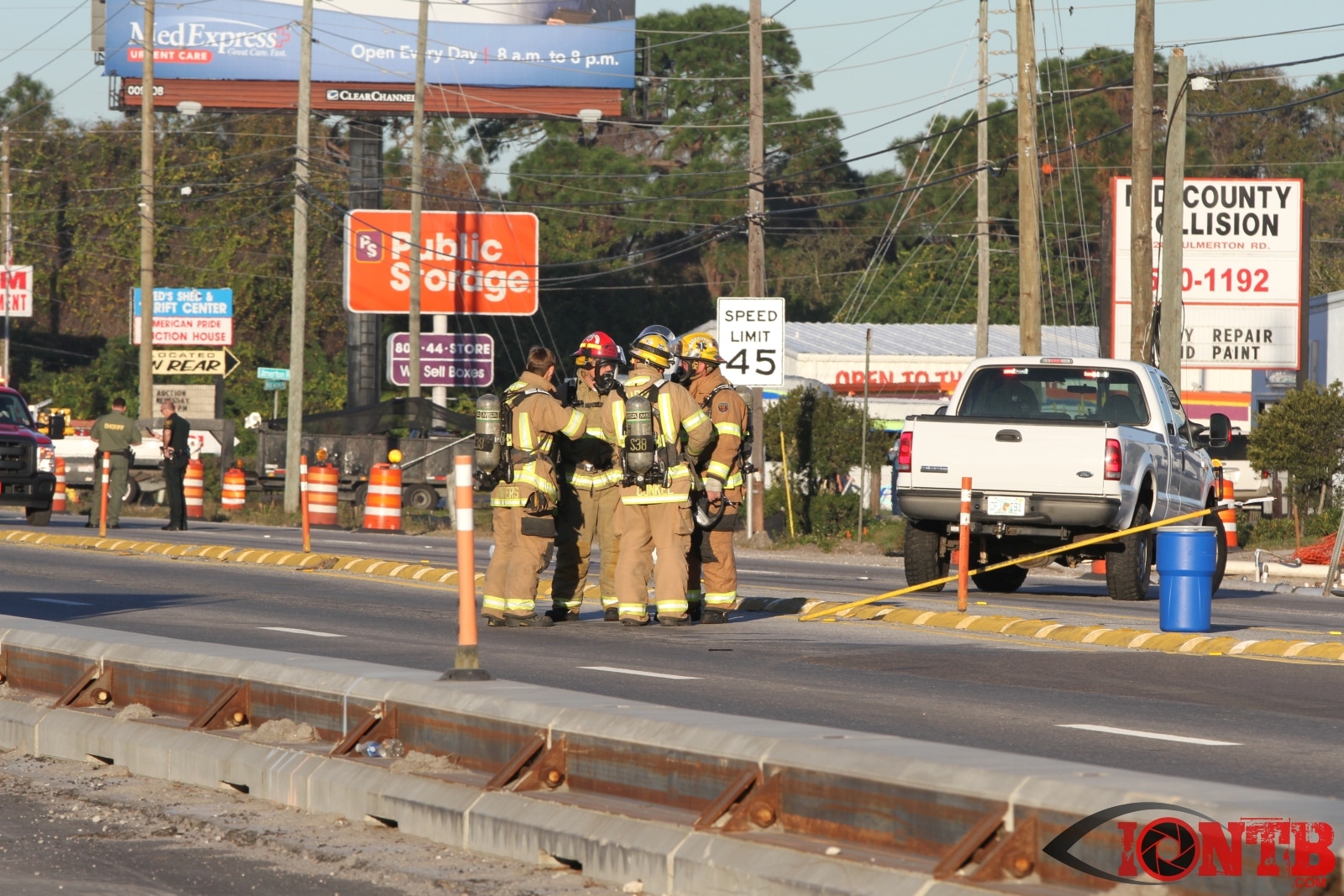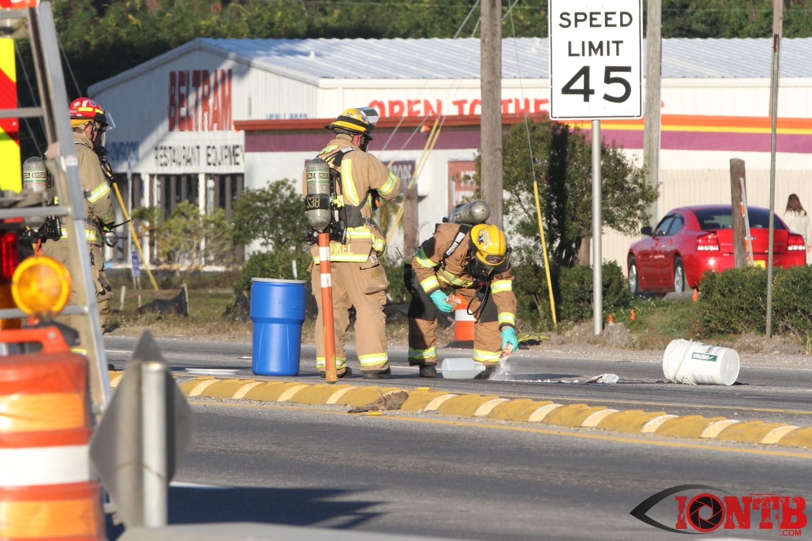 Crews from Largo Fire Rescue responded with multiple units to evaluate the chemicals. Ulmerton Road was closed in both directions from about 7:30am until 9:15am. Crews worked to neutralize what appeared to be some acid which had mixed with a liquid resin product. Officials were called in from the Florida Department of Transportation to complete the cleanup and evaluate the roadway surface.