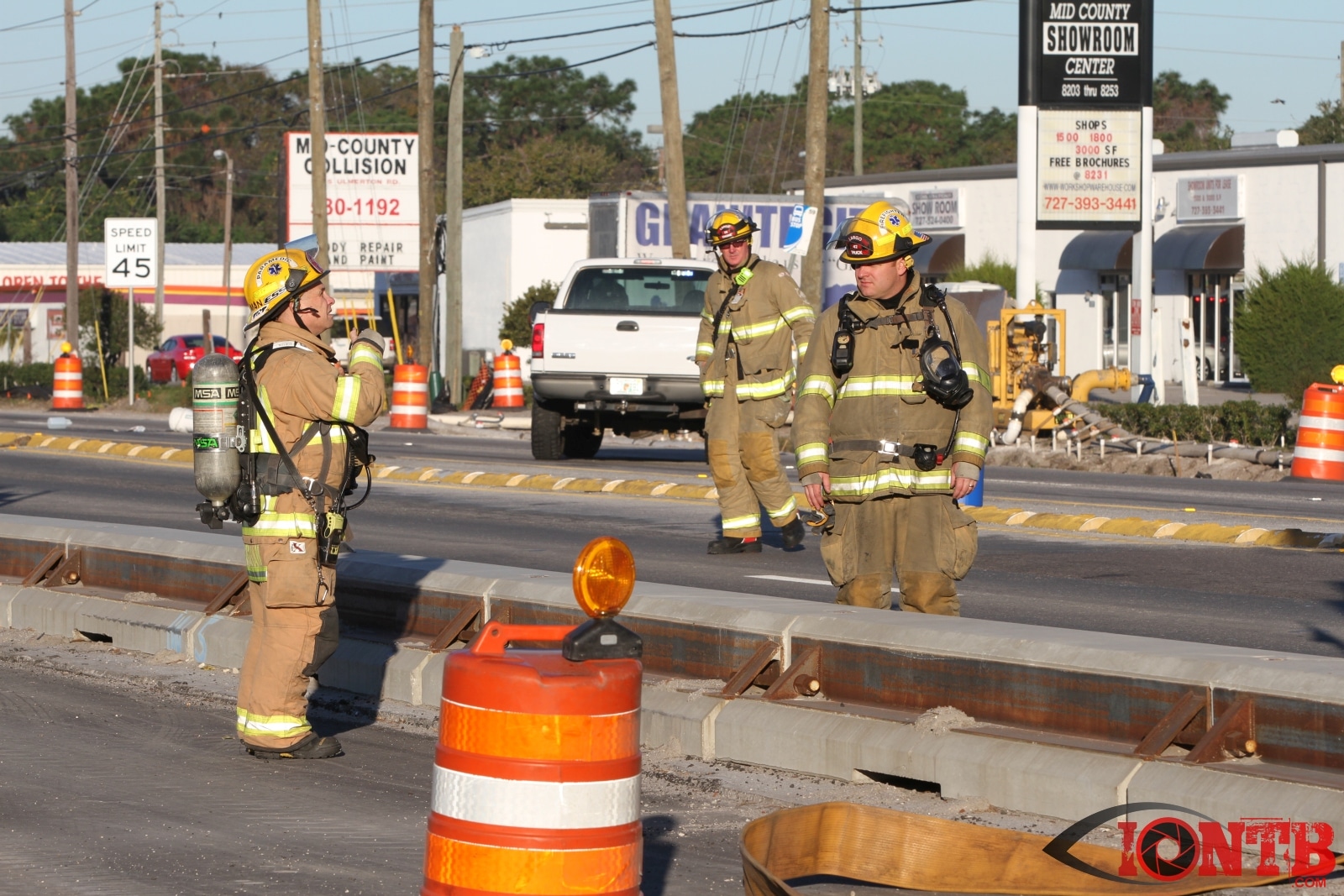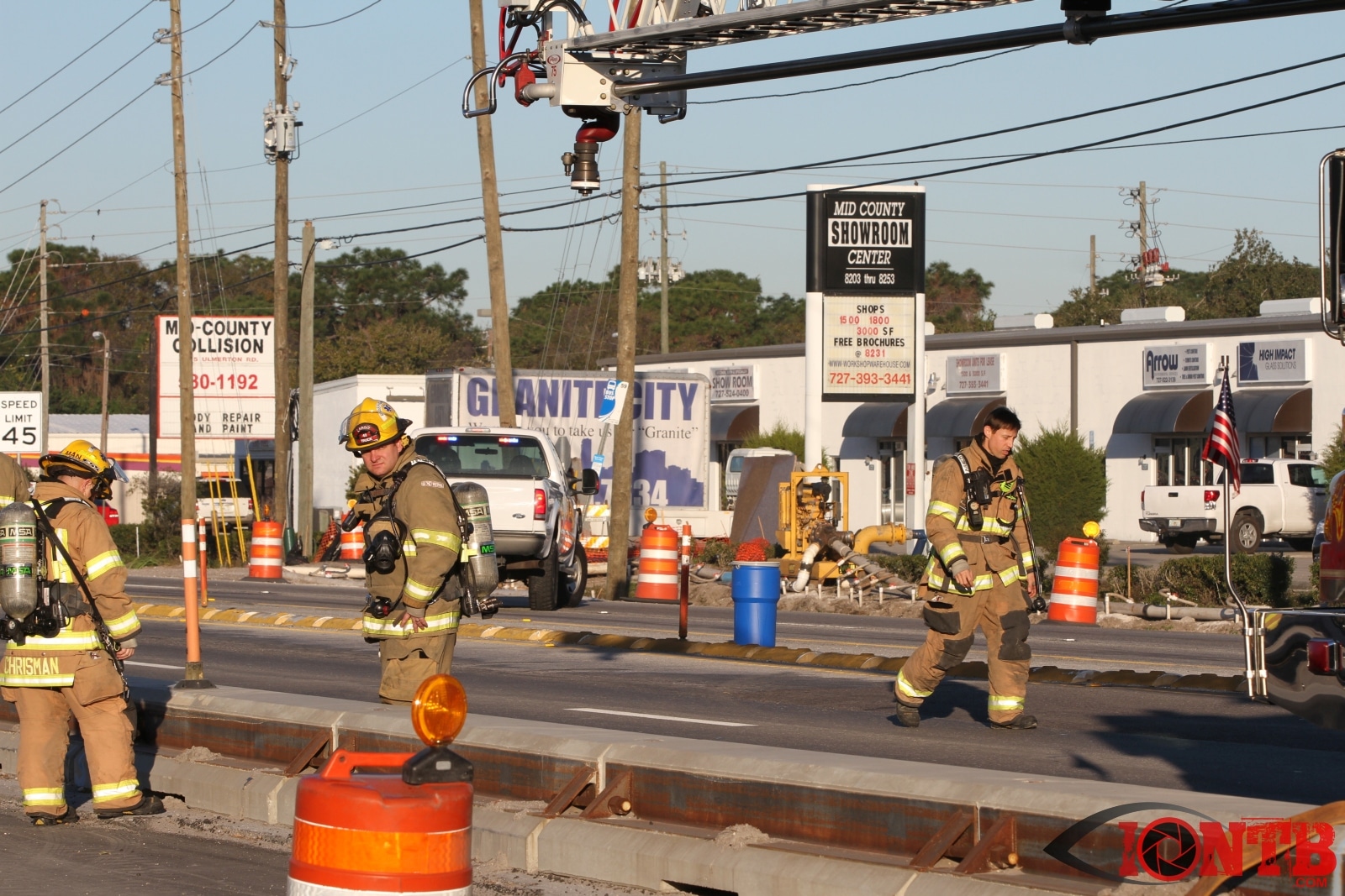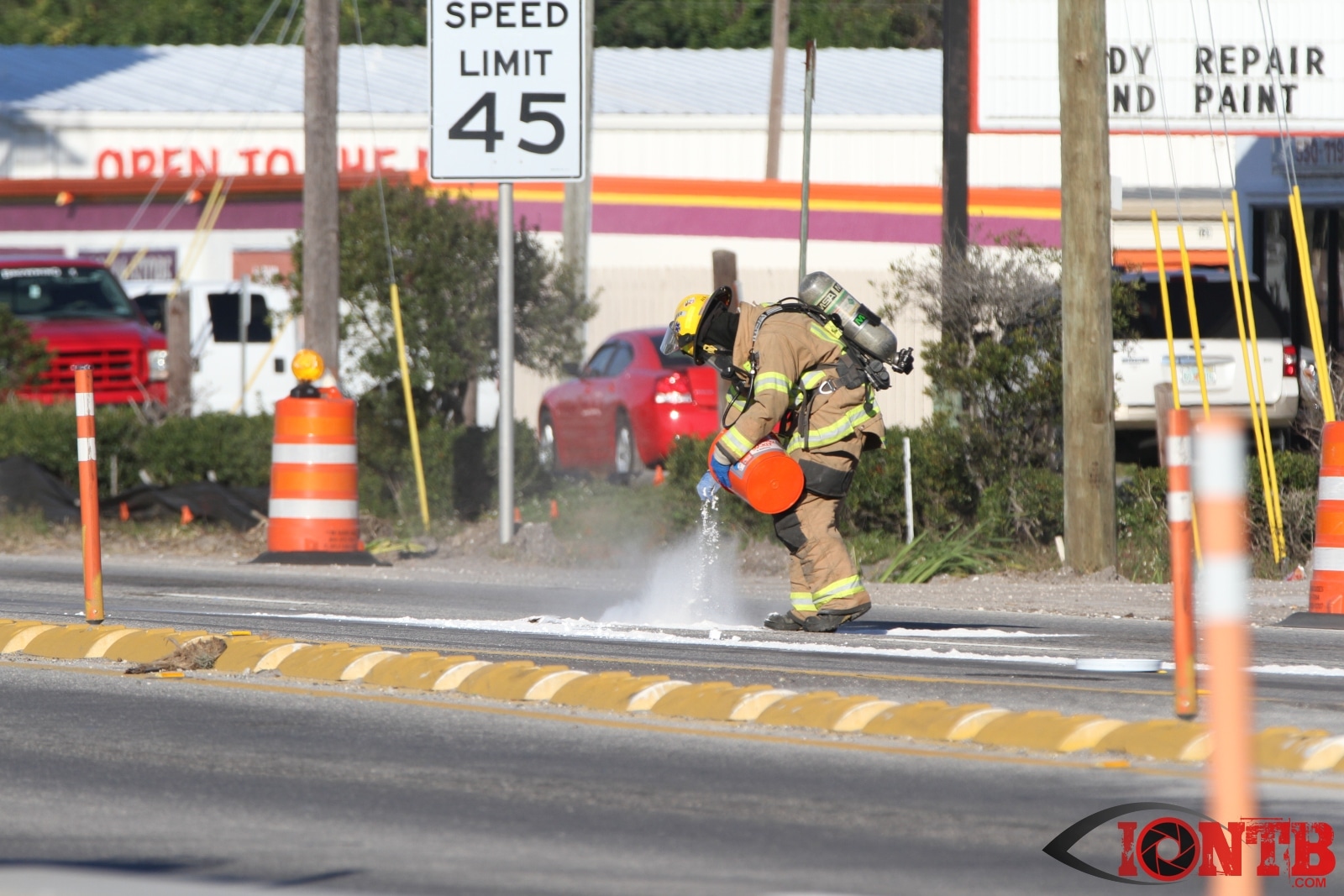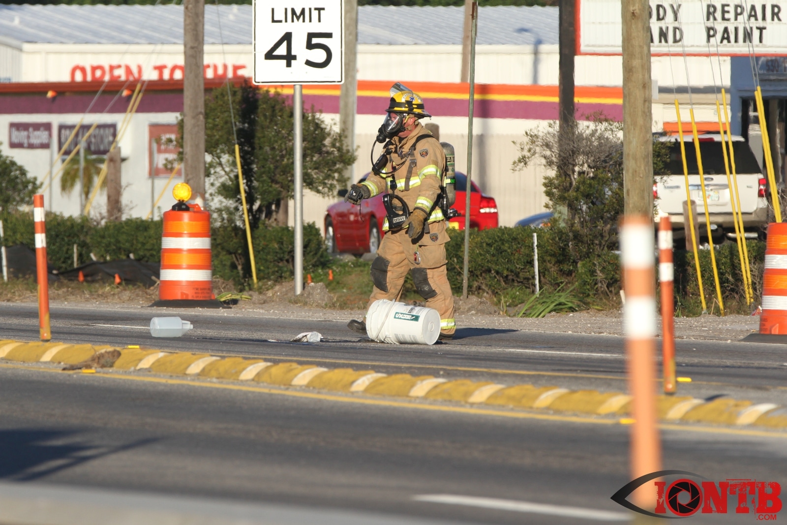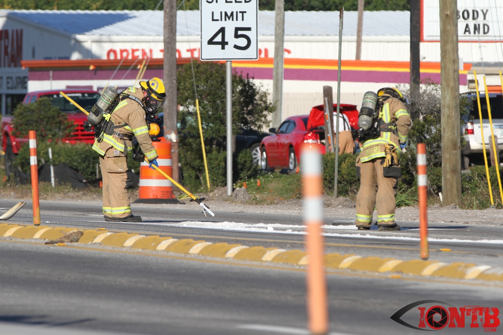 Crews from Largo Fire Rescue responded with multiple units to evaluate the chemicals. Ulmerton Road was closed in both directions from about 7:30am until 9:15am. Crews worked to neutralize what appeared to be some acid which had mixed with a liquid resin product. Officials were called in from the Florida Department of Transportation to complete the cleanup and evaluate the roadway surface.