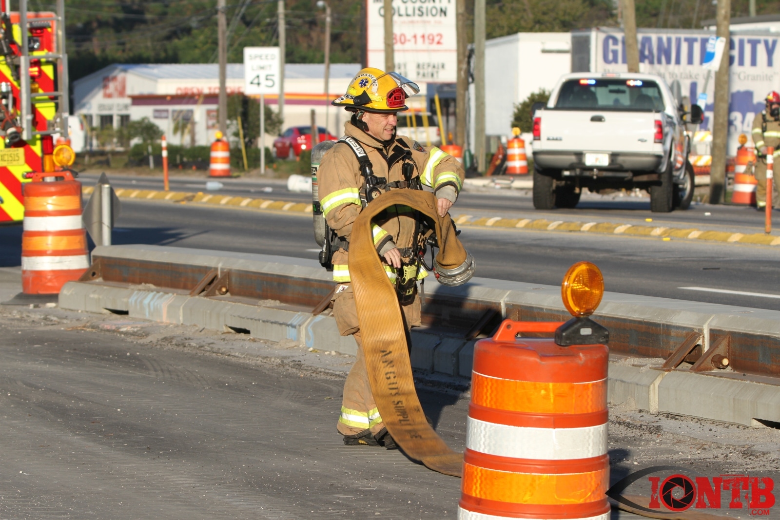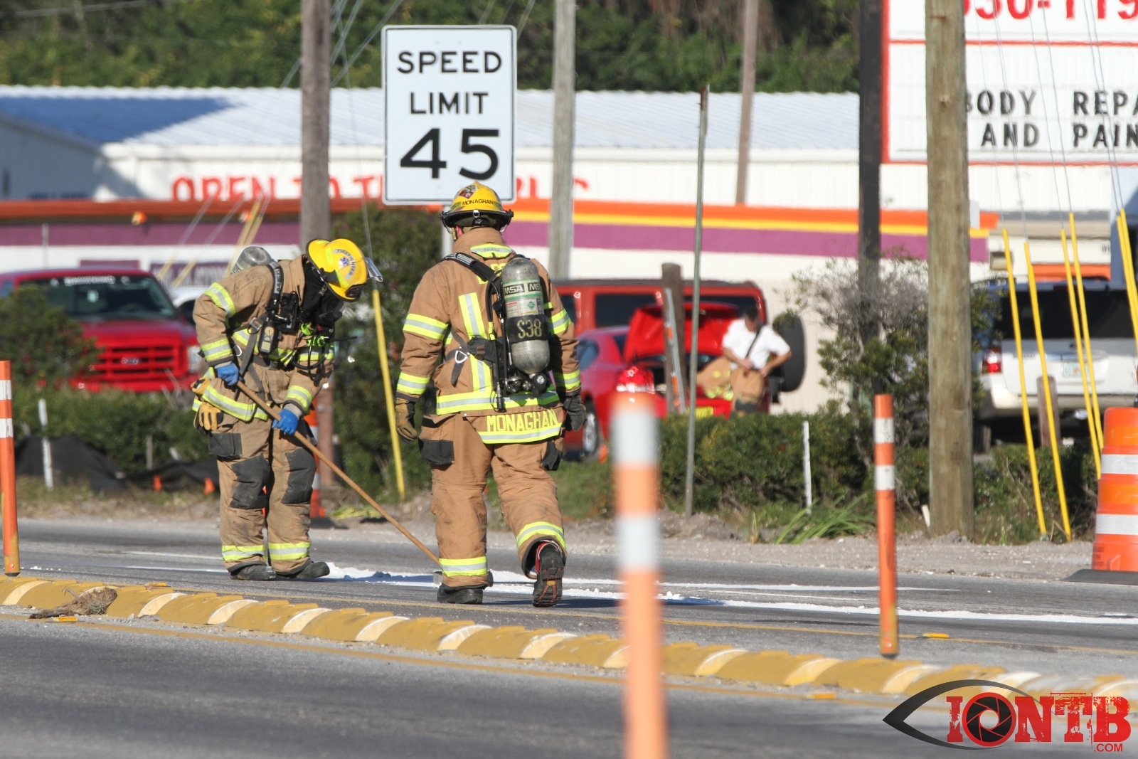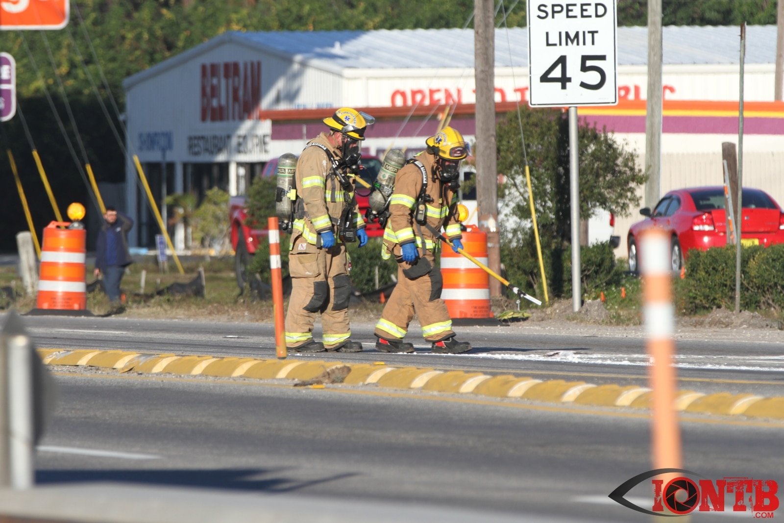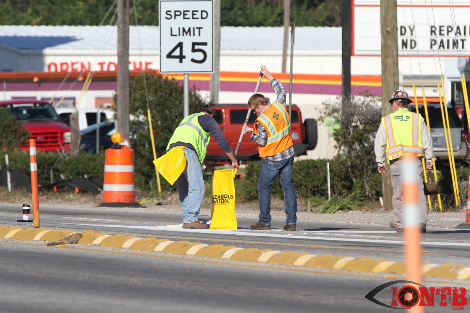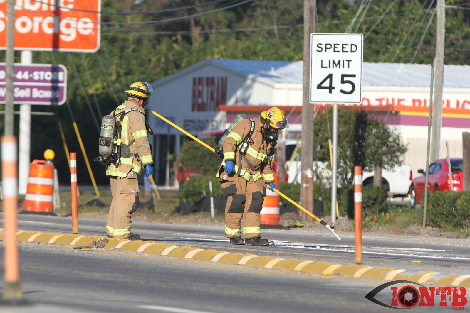 Crews from Largo Fire Rescue responded with multiple units to evaluate the chemicals. Ulmerton Road was closed in both directions from about 7:30am until 9:15am. Crews worked to neutralize what appeared to be some acid which had mixed with a liquid resin product. Officials were called in from the Florida Department of Transportation to complete the cleanup and evaluate the roadway surface.