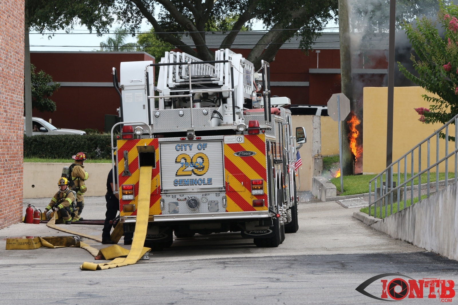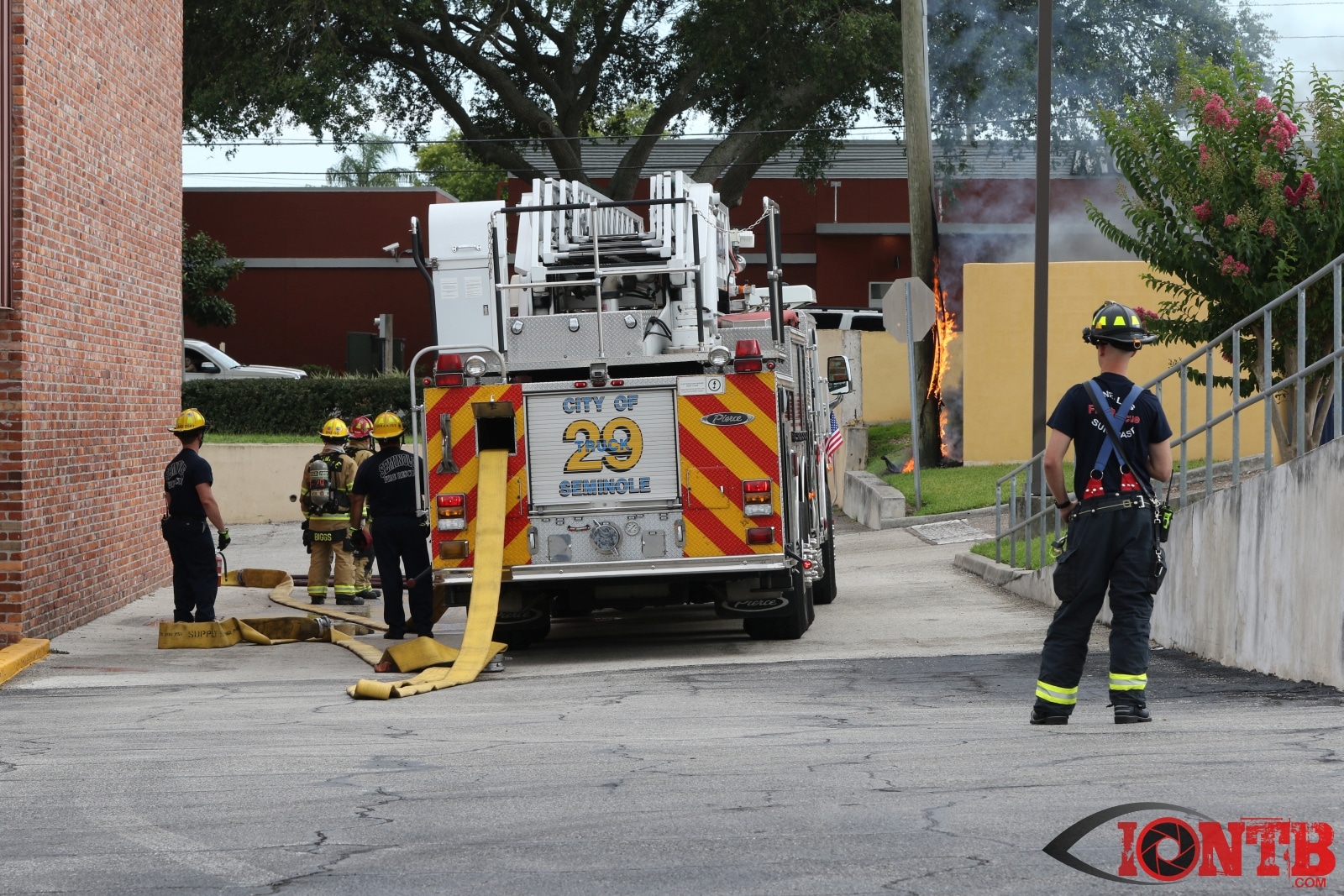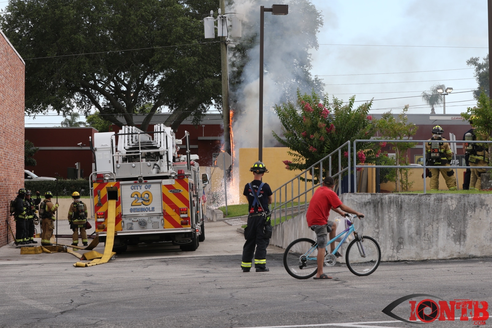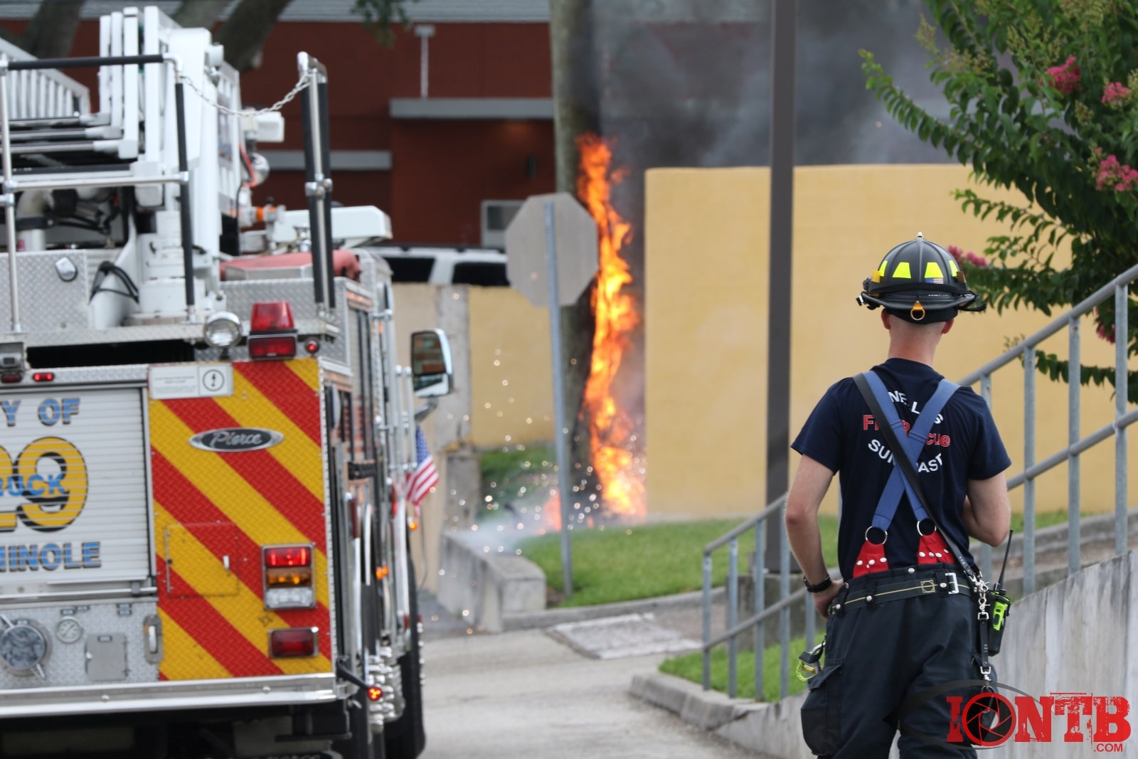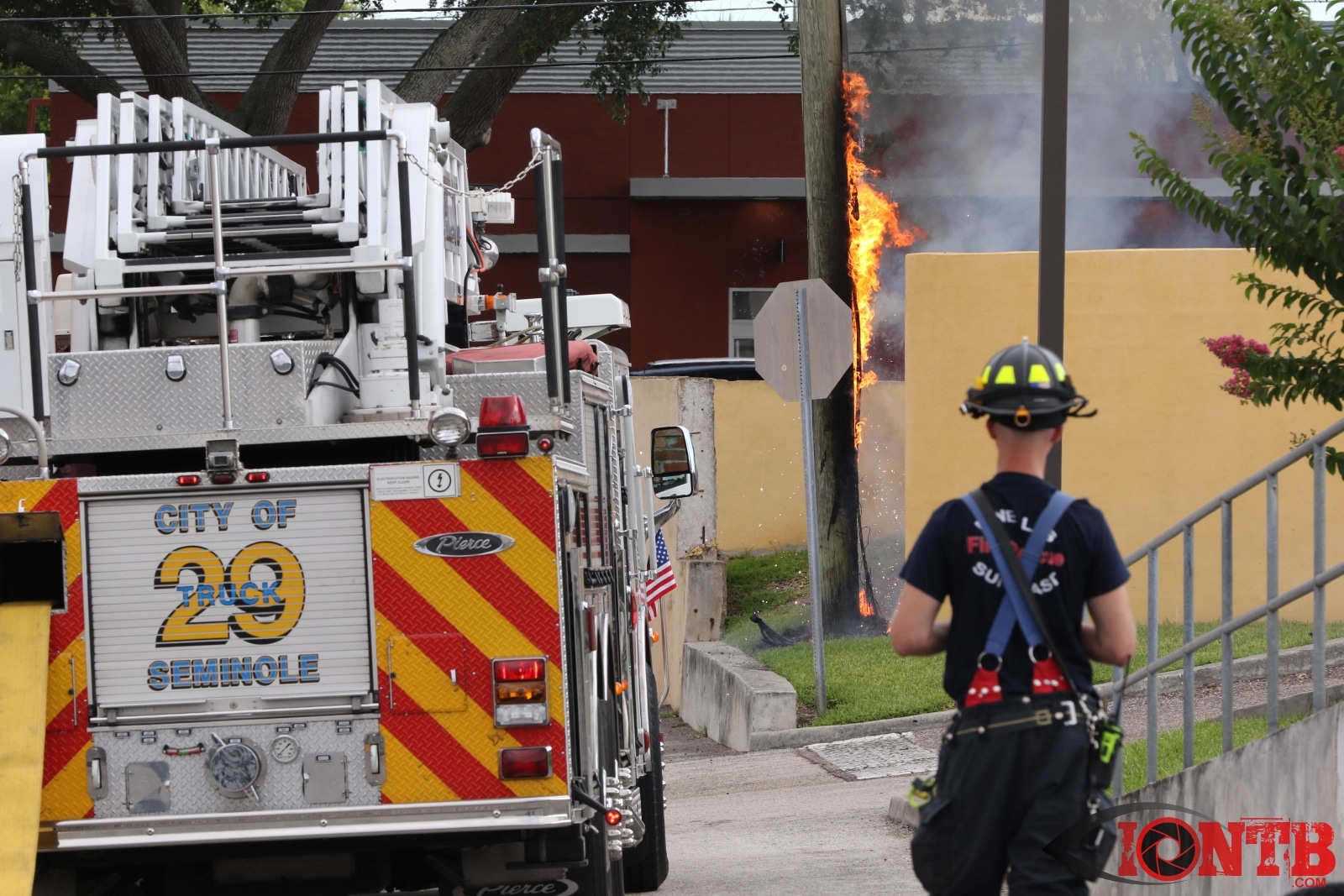 At approximately 5:30PM on Sunday evening, crews from Seminole Fire Rescue, Pinellas Suncoast Fire & Rescue and Largo Fire Rescue responded to 7103 Seminole Boulevard. Arriving crews found a utility pole and junction box engulfed in flames. Power was cutoff to the adjoining KFC restaurant to prevent possible spreading of the fire.