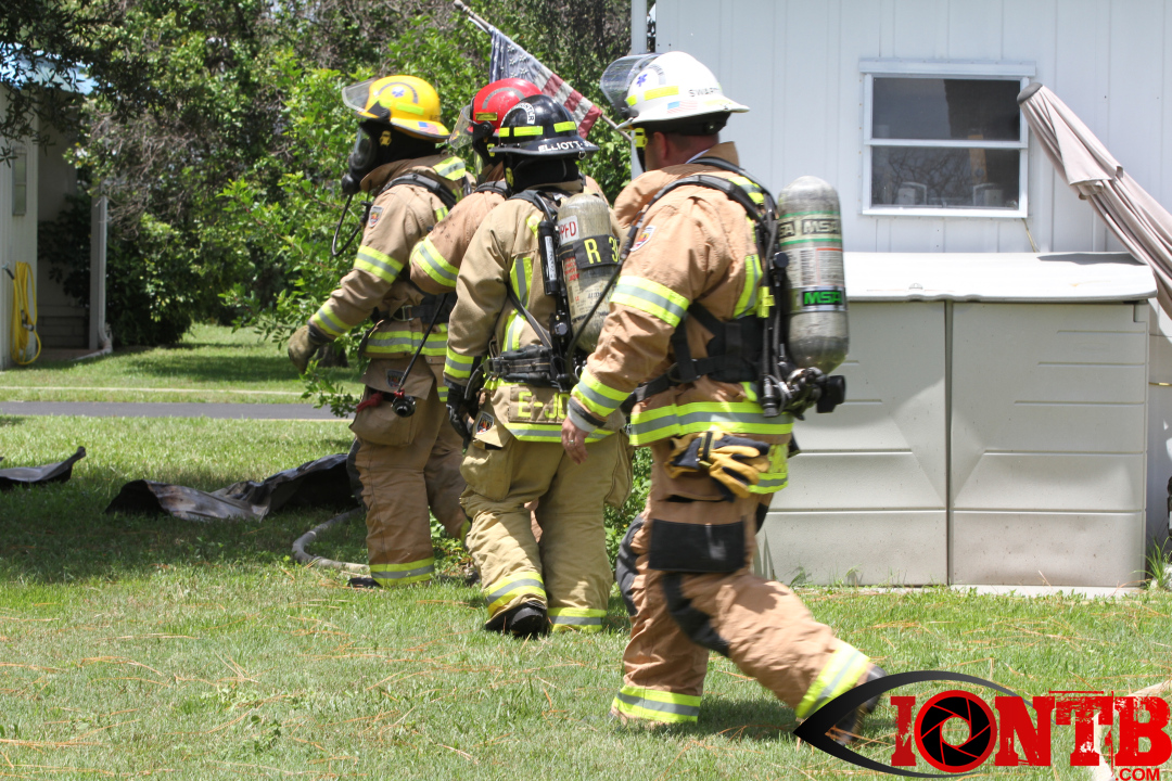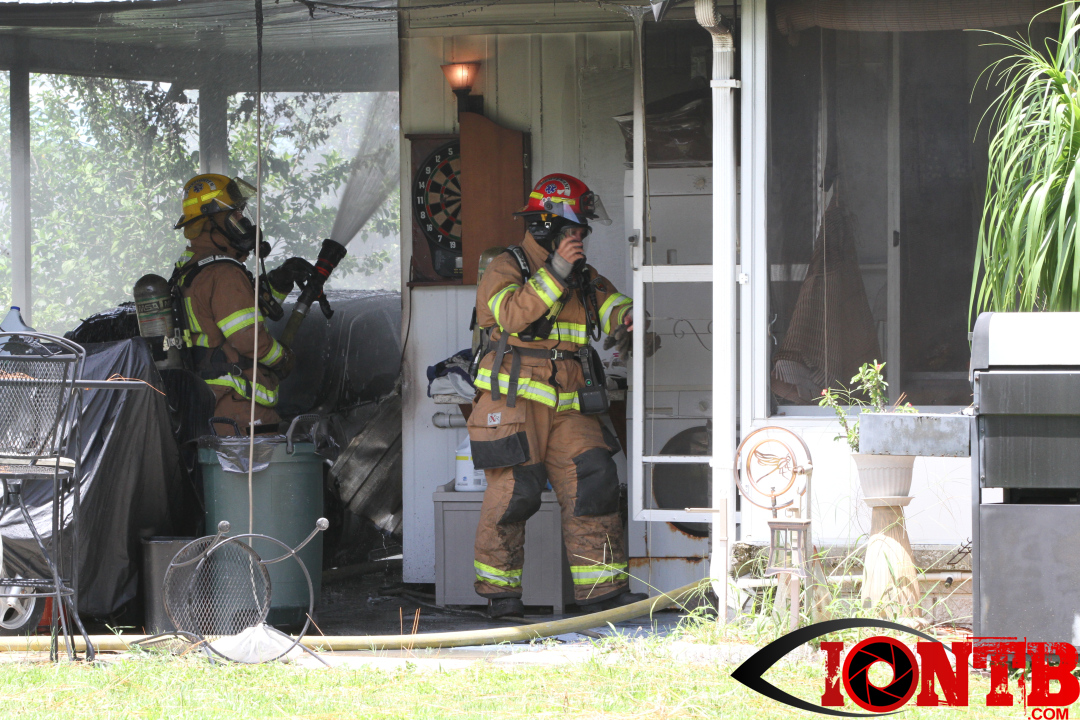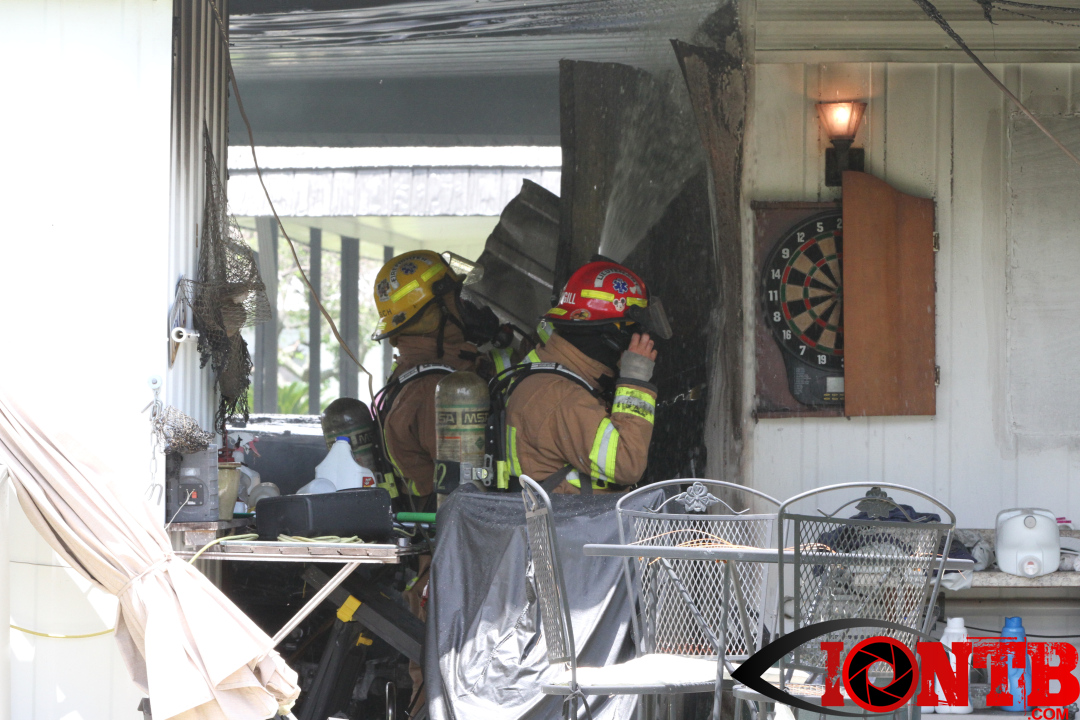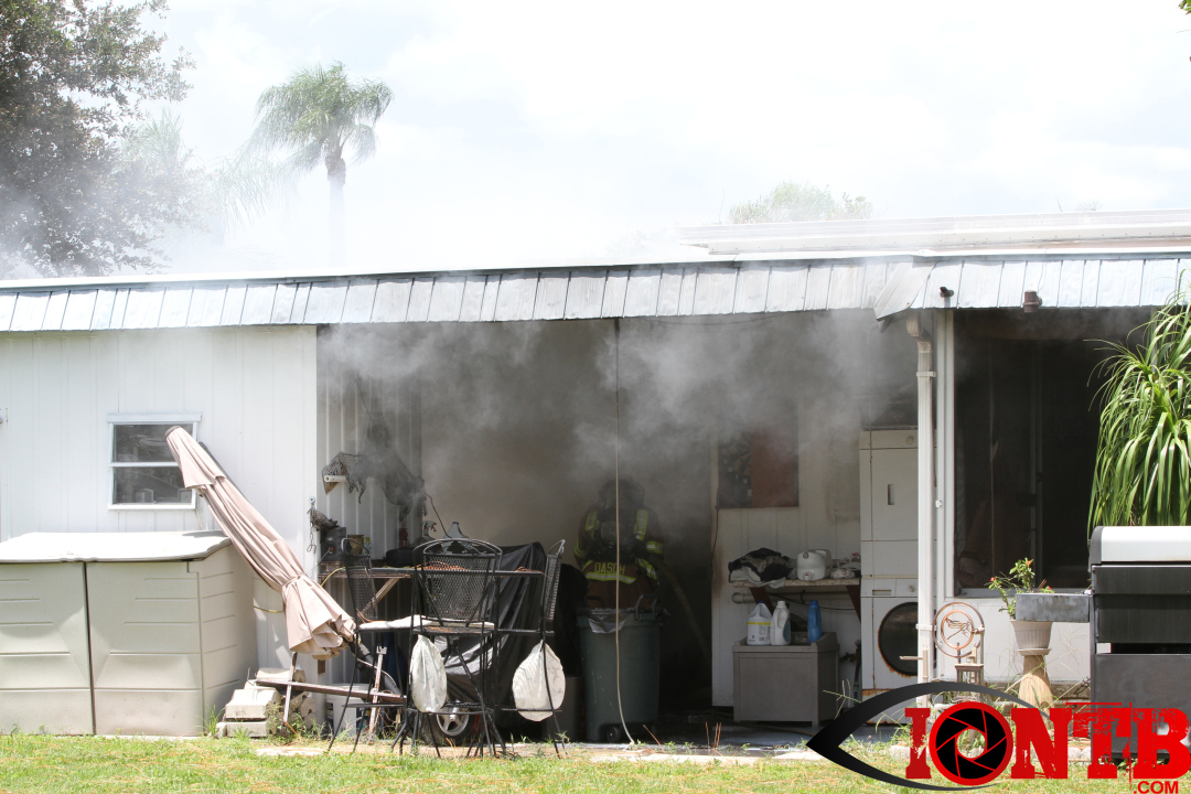 At about 1:48 pm this afternoon, Largo Fire Department was dispatched to a vehicle fire in the Ranchero Village Co-Op located at 7100 Ulmerton Road in Largo. The incident was quickly upgraded to a full structure response due the information provided that the vehicle was still parked in the connected carport. Upon arrival, the vehicle was fully involved and firefighters instituted a fast attack. This quick response and fast attack was integral in minimizing damage to the entire home.