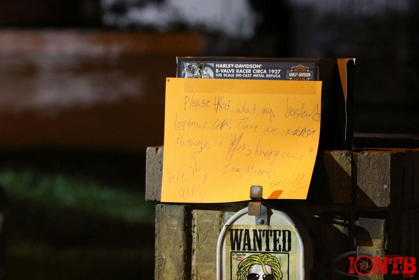 A note was placed on the mailbox next to numerous items left by the curb.  The note read, Please take what my bastard boyfriend left. There are more things. He’s happy and I am happy he left. Take it all!”  Neighbor’s report that her boyfriend moved out and that she placed this items outside. According to deputies arrived on scene, Tenney was found inside the residence partially unclothed.